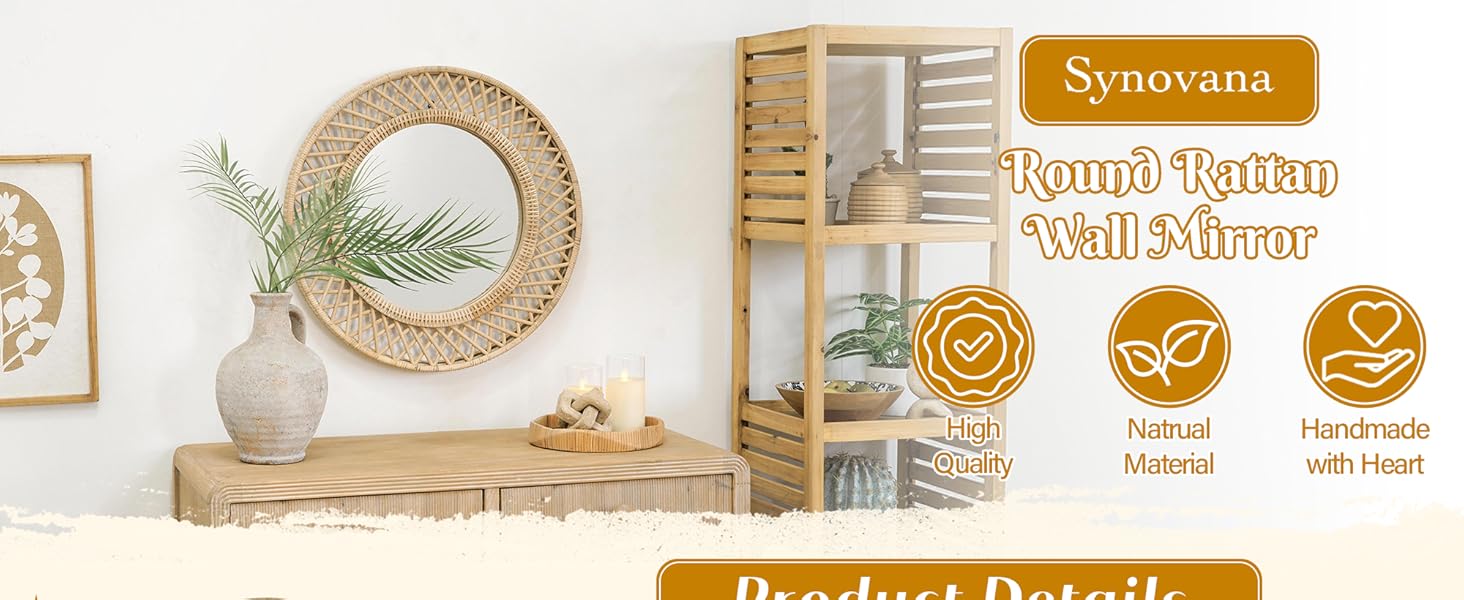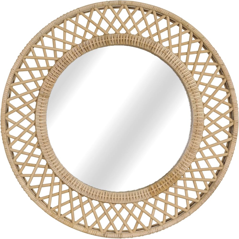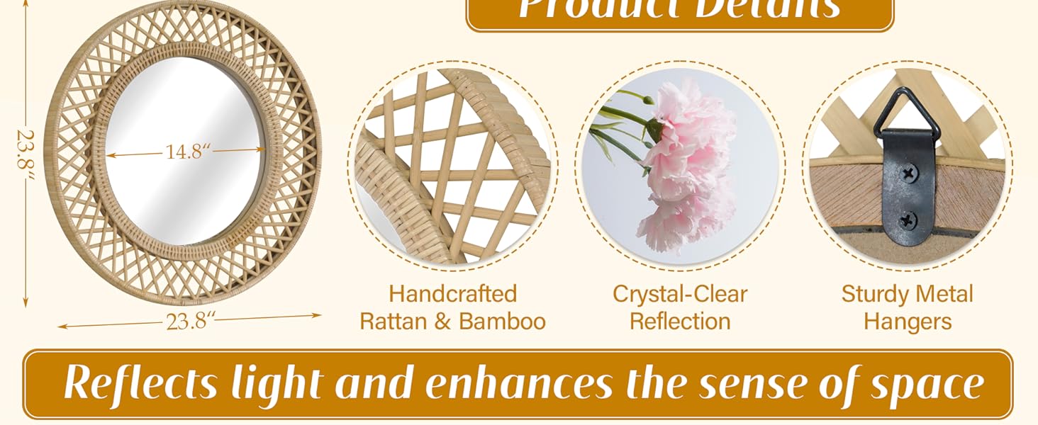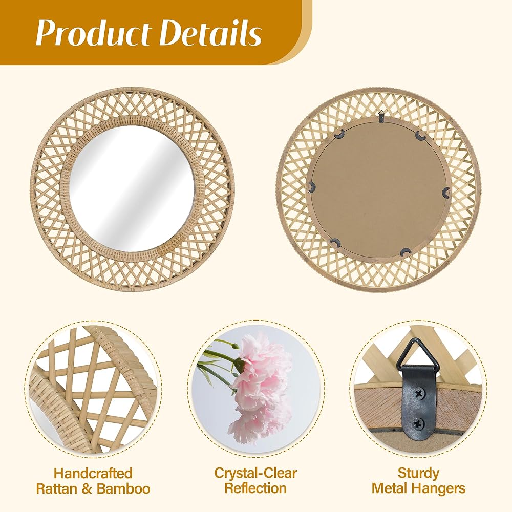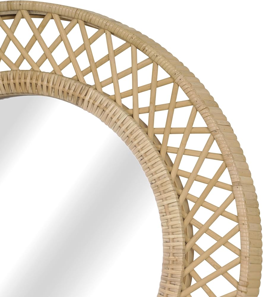 انعكاس الحب في ضوء الشمس - تتوهج هذه المرآة المستديرة مثل شروق الشمس اللطيف، حيث يجسد إطارها المصنوع من الخيزران المنسوج الدفء والرومانسية المفعمة بالحيوية للحياة البوهيمية.