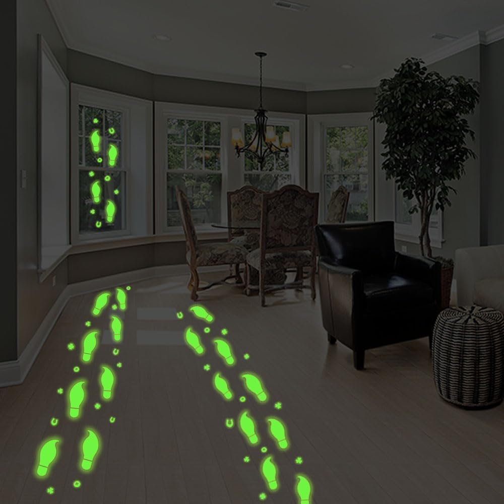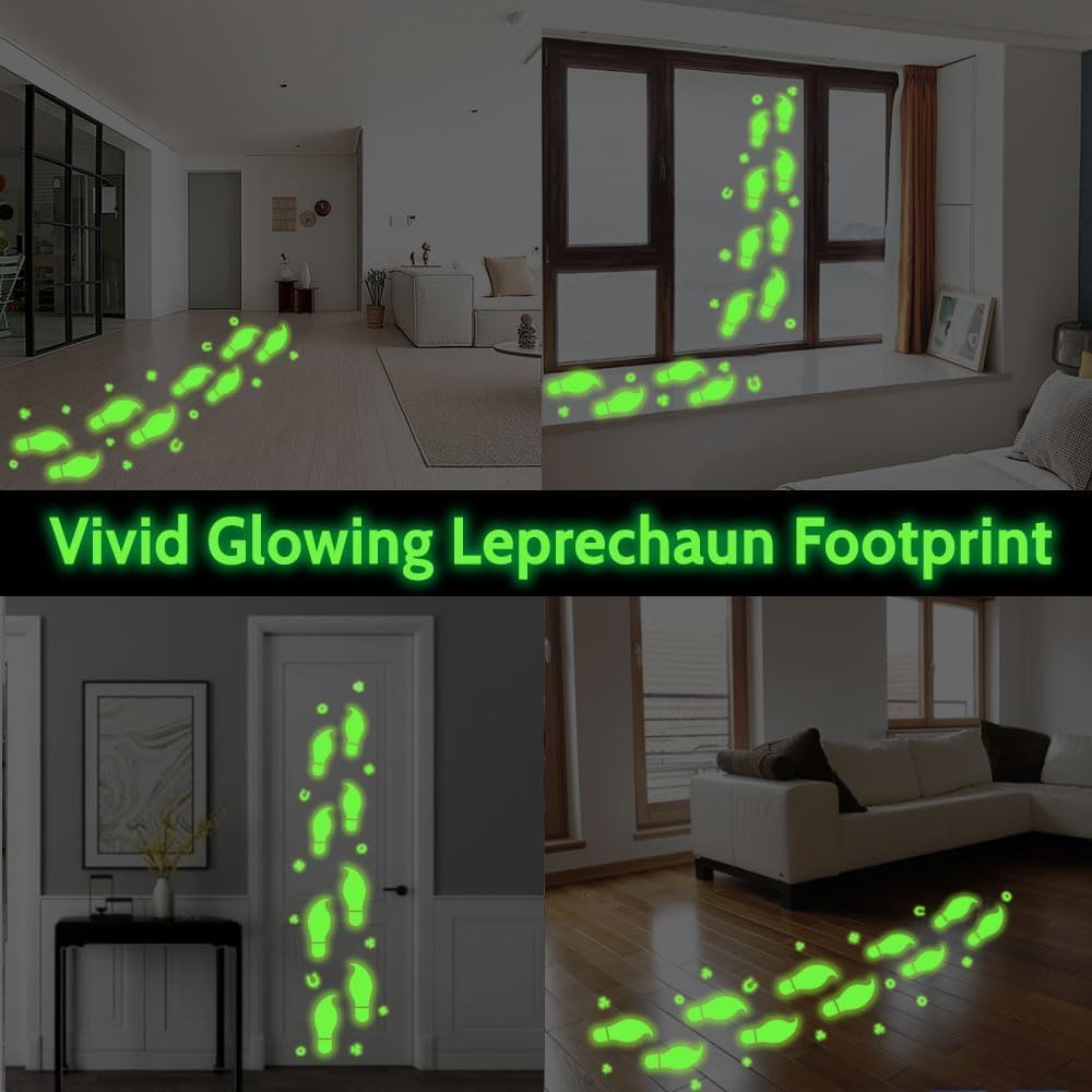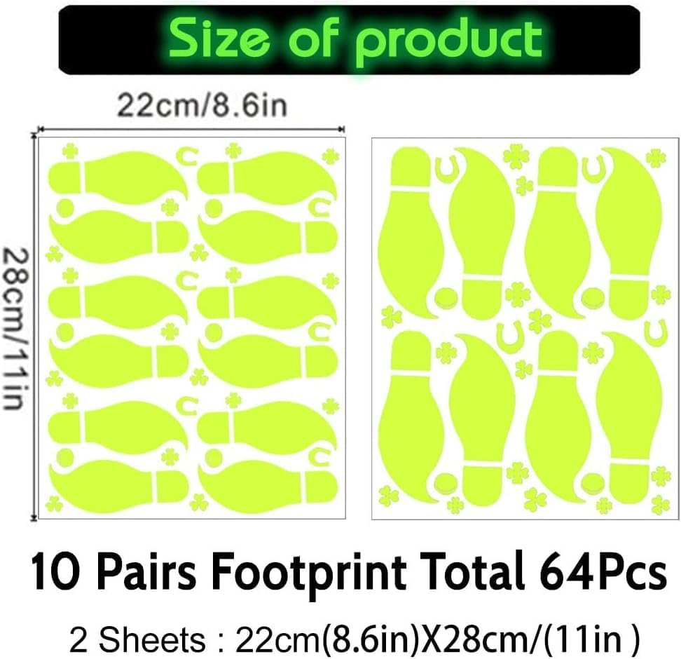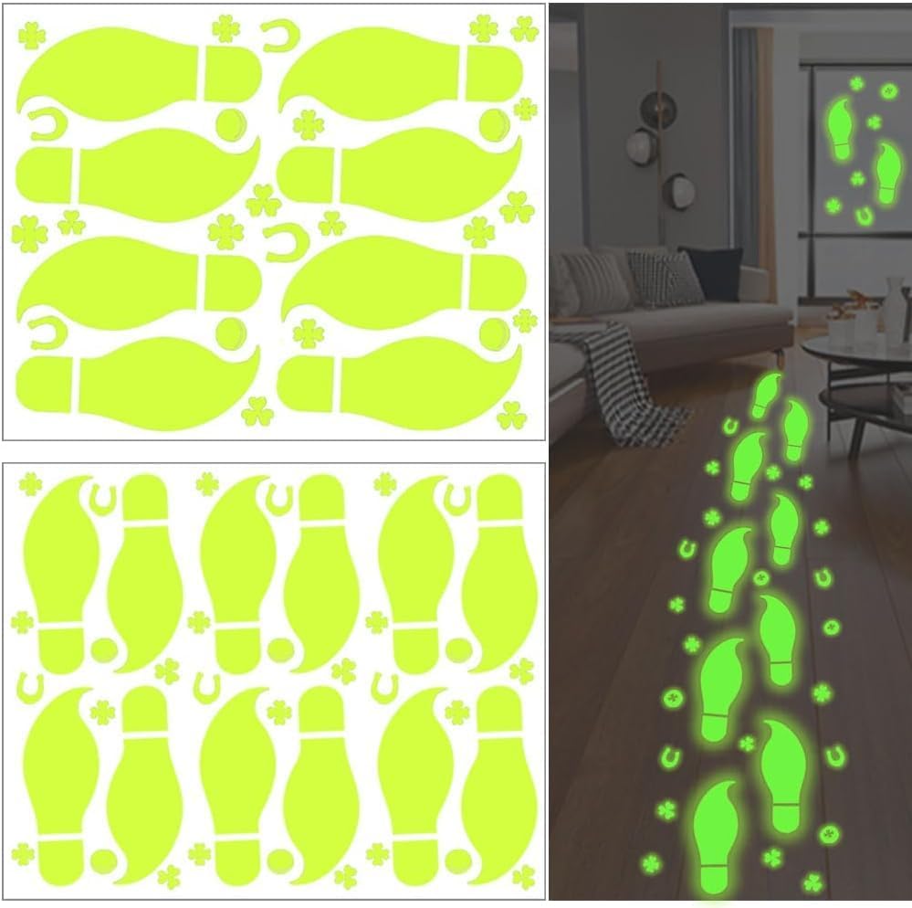 【Glow in The Dark】 Transform your space with leprechaun footprints and shamrock decals stickers that illuminate at night, creating a magical St Patricks Day atmosphere instantly bringing a unique visual.