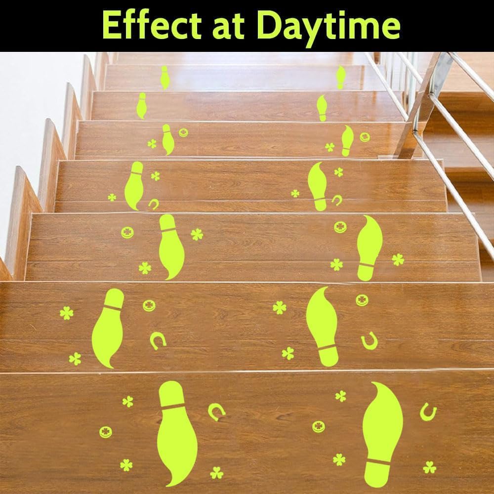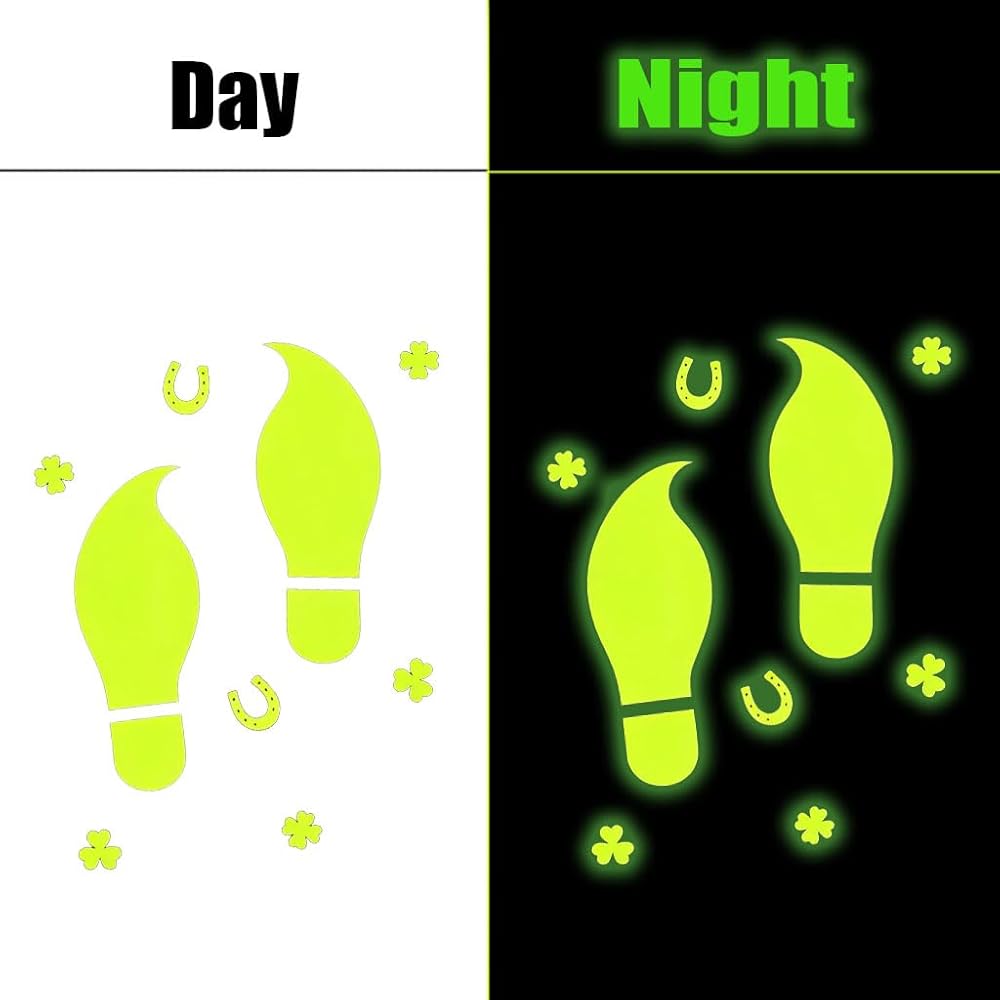 【Premium Quality Floor Decor】 Glow in The Dark The luminous stickers require 20-30 minutes of exposure to light. Ensure the st Pattys day stickers absorb enough light from a lamp, or sunlight. Making them perfect for temporary Paddys day DIY holiday decorating.