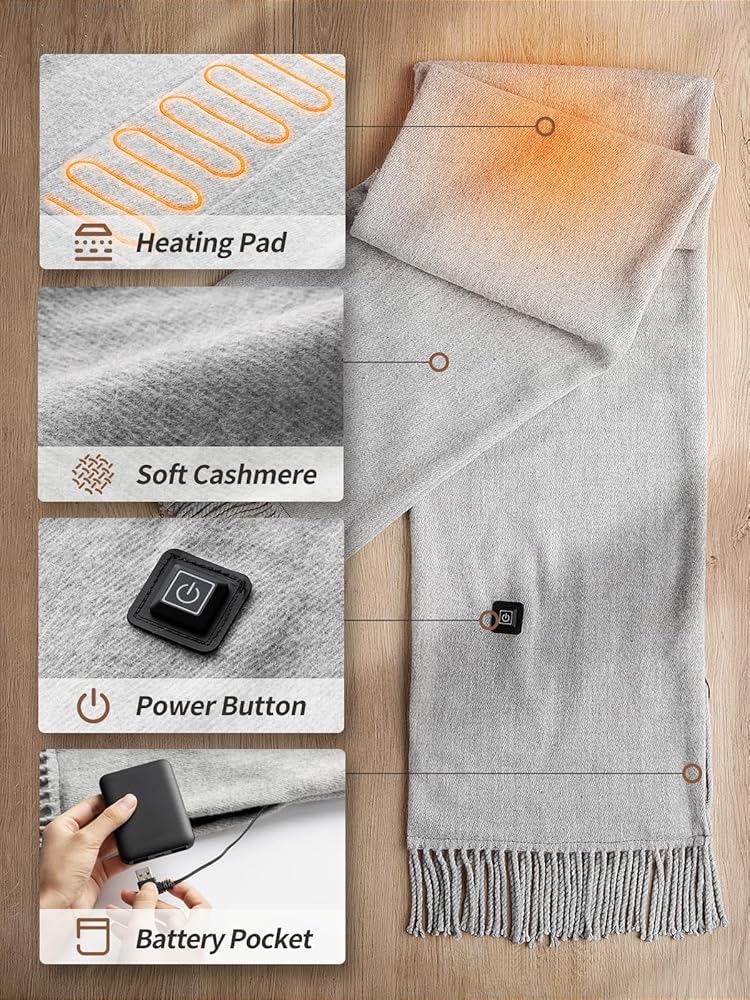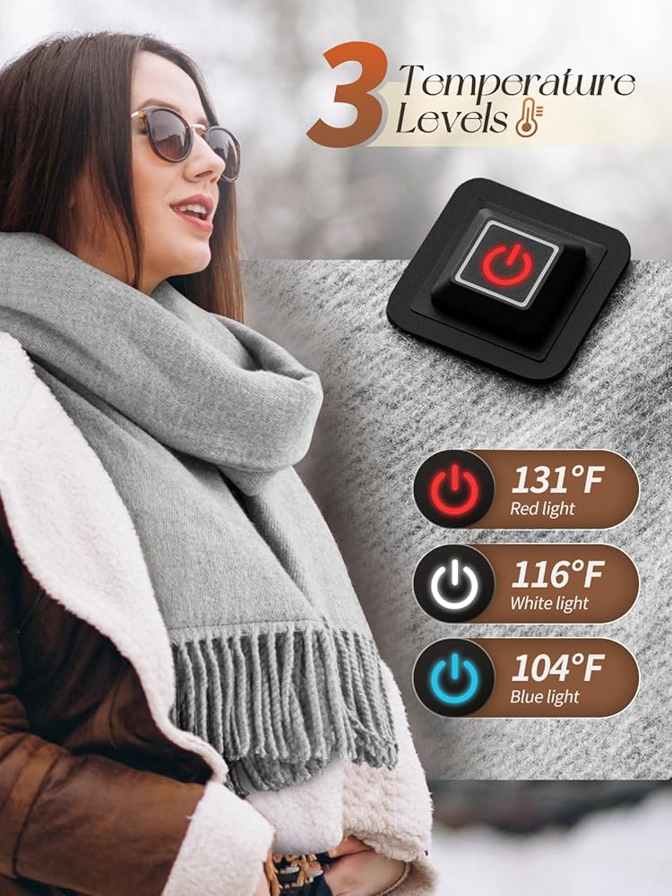 وشاح تسخين Eventek للرجال/النساء مع بطارية 5000 مللي أمبير في الساعة، 3 إعدادات لدرجة الحرارة سخان يعمل بالبطارية لفصل الشتاء