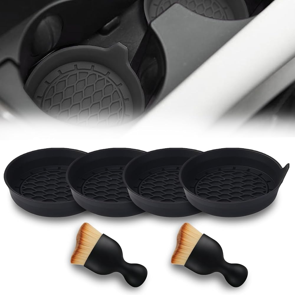A versatile car interior accessory kit featuring anti-slip cup holder coasters and soft detailing brushes.