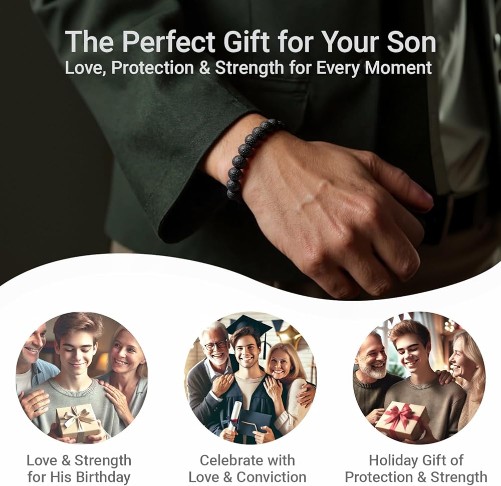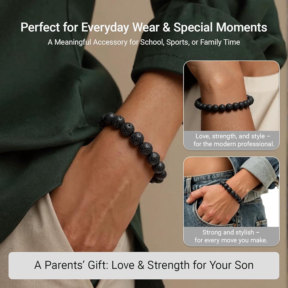 ⭐ 1. هدية ذات معنى للابن من الأم والأب، هذا السوار المصنوع من الحجر الطبيعي هو تذكير من القلب بحبك وتشجيعك. مصمم خصيصًا للأولاد والأولاد المراهقين، فهو يرمز إلى القوة والشجاعة والحماية - مما يجعله هدية ذات معنى من الأم أو الأب يمكن ارتداؤها كل يوم.
