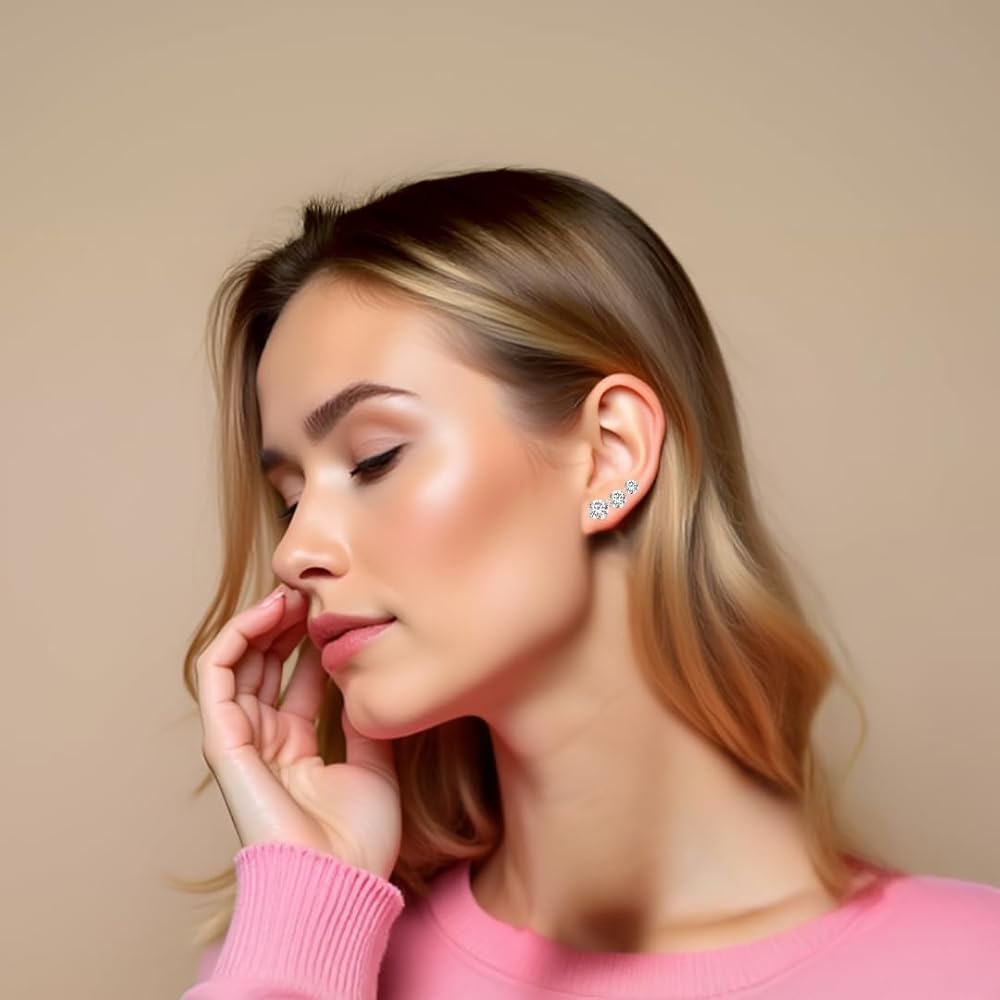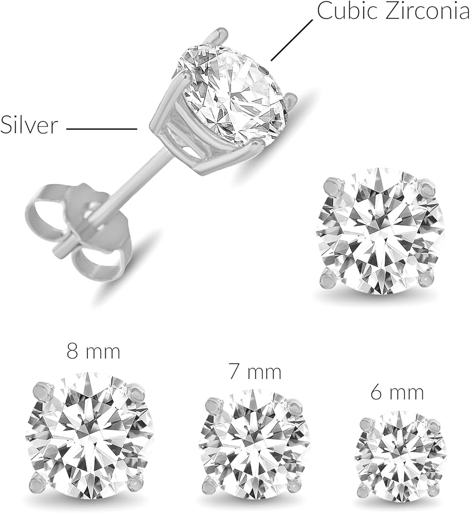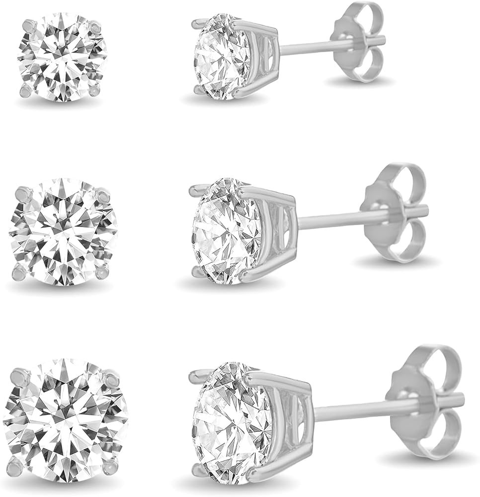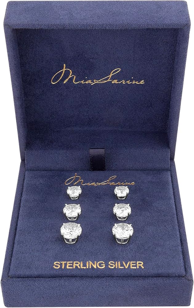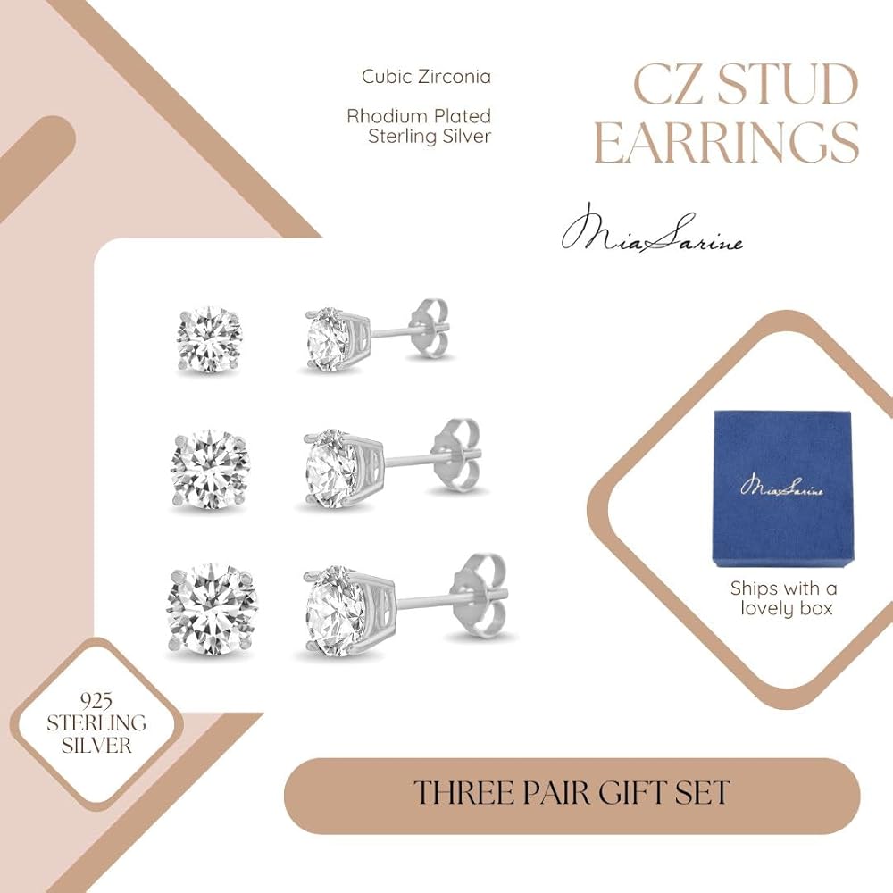 أقراط فضية مرصعة بأحجار الزركونيا المكعبة للنساء مكونة من 3 أزواج مرصعة بأحجار الزركونيوم 925 حلق استرليني