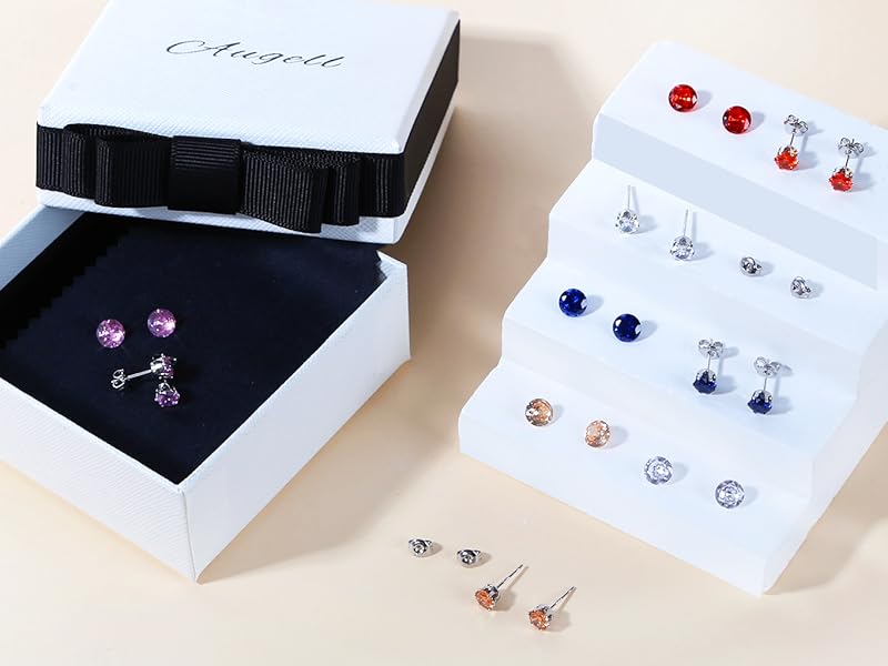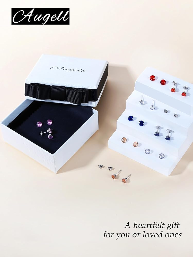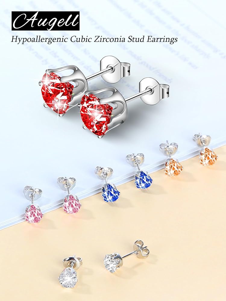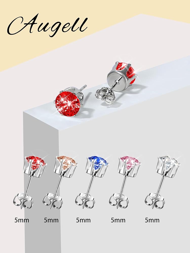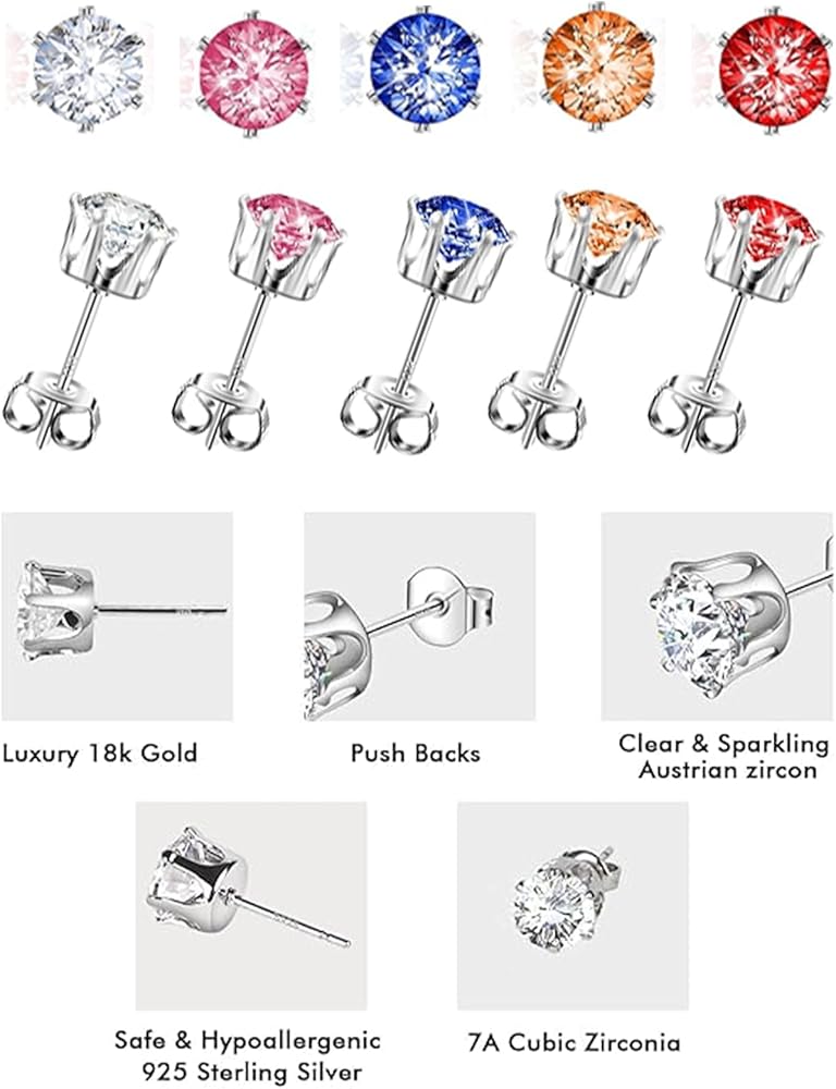 مجموعة أقراط نسائية مكونة من 5 أزواج من أقراط الزركونيا المكعبة متعددة الألوان، مجموعة أحجار الميلاد المضادة للحساسية، هدية مجوهرات فاخرة لها