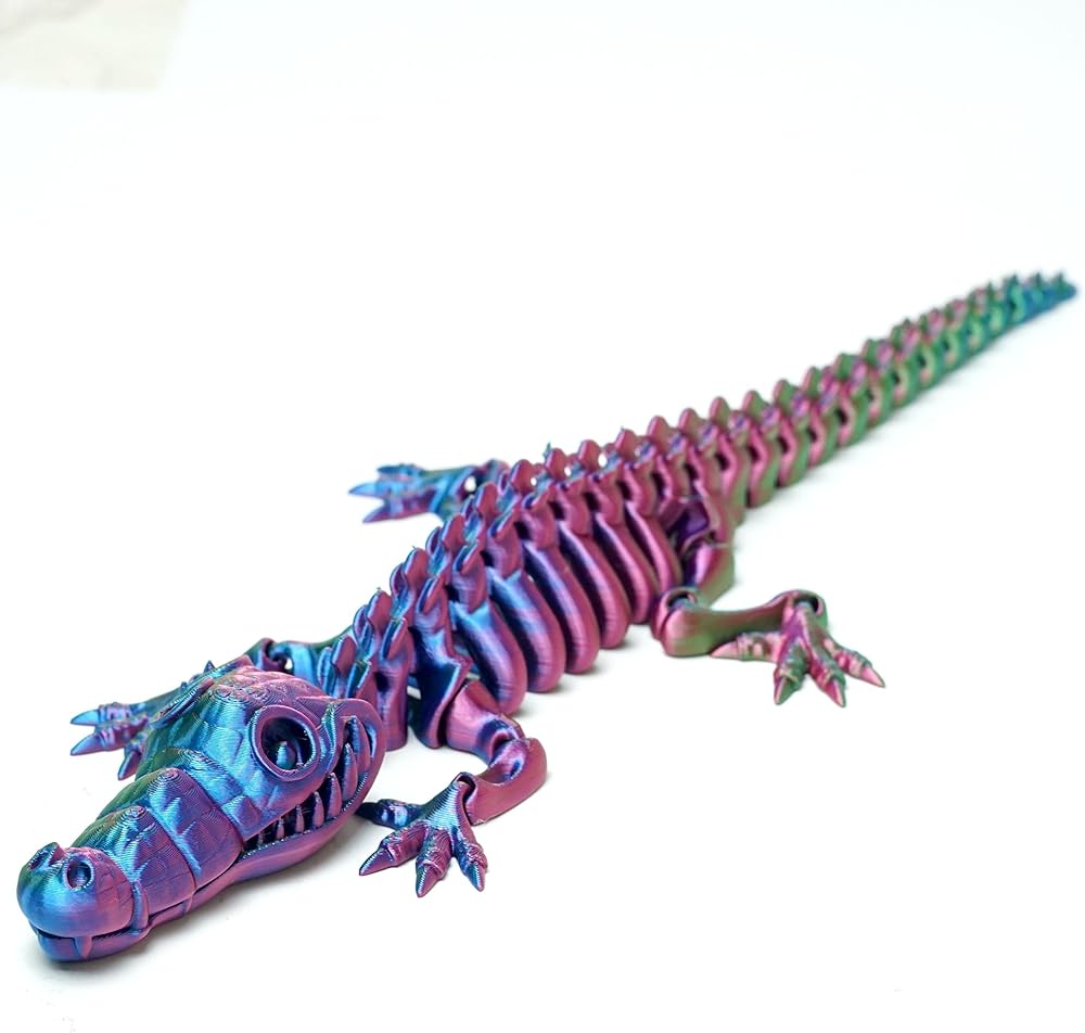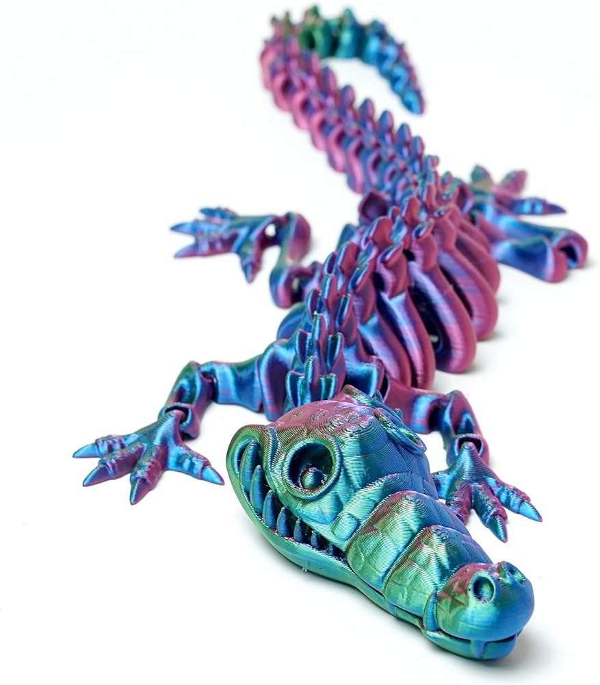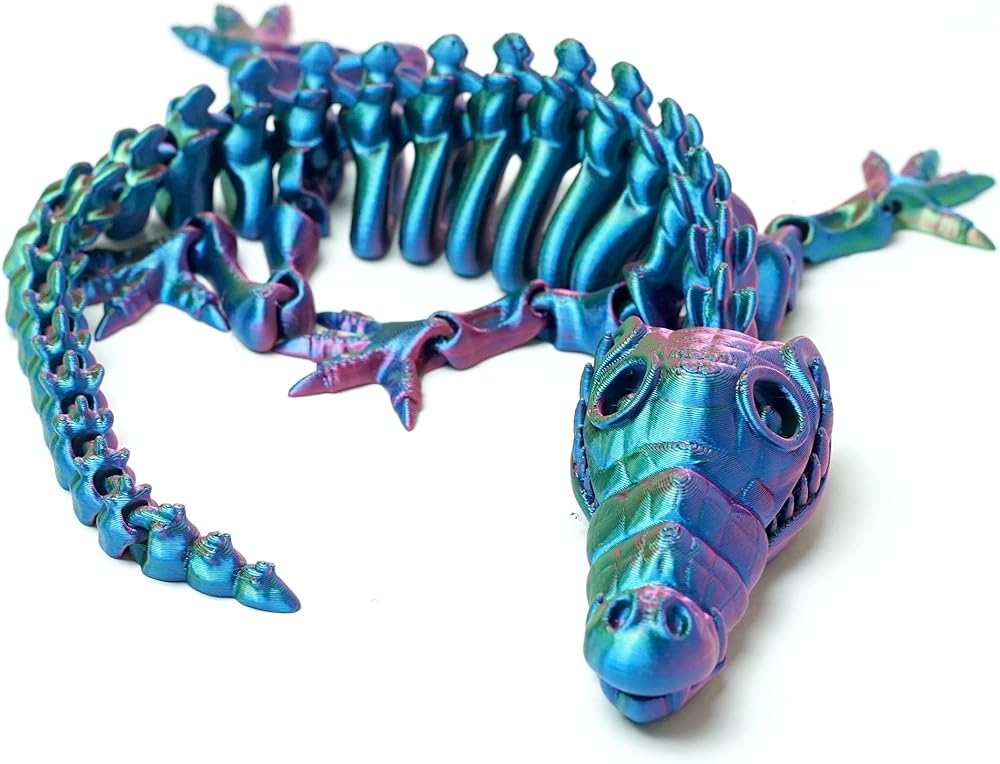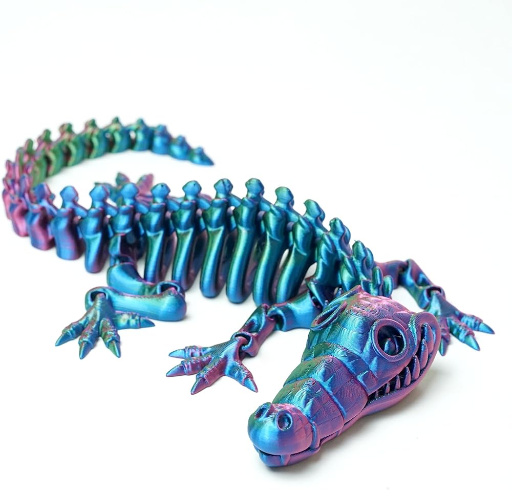 تمساح هيكل عظمي مطبوع ثلاثي الأبعاد، تمثال لعبة حيوانات مرنة، مفاصل متحركة، ديكور مكتب المنزل، لعبة تململ للبالغين والمراهقين هدايا المهرجانات، حشوات سلة عيد الفصح، لعبة حيوانات المكتب التنفيذية توكو (RGB)