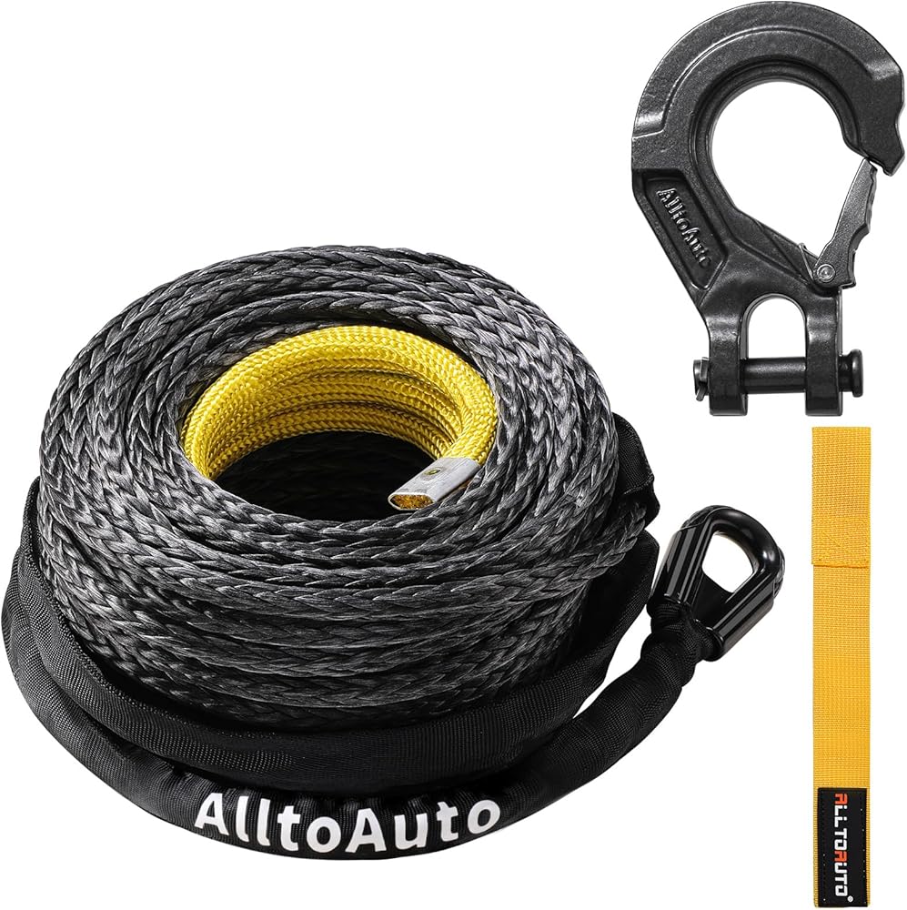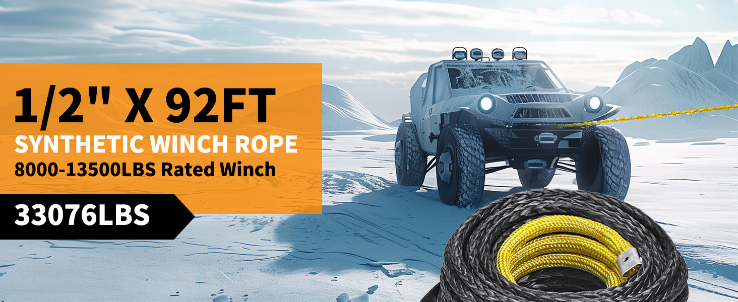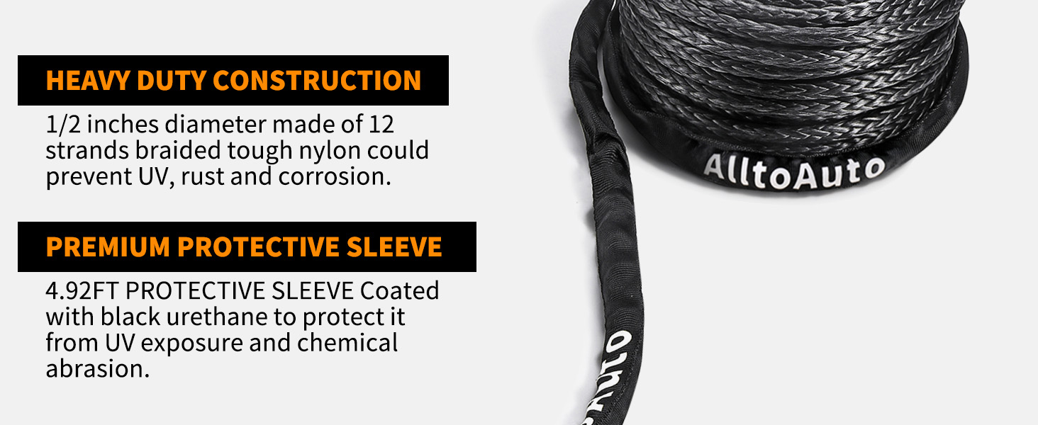 حبل ونش مع خطاف، 1/2 بوصة × 92'-33076 رطل كابل خط حبل ونش صناعي من Dyneema مع كم واقي لشاحنة 4WD ملحقات ونش السيارة على الطرق الوعرة