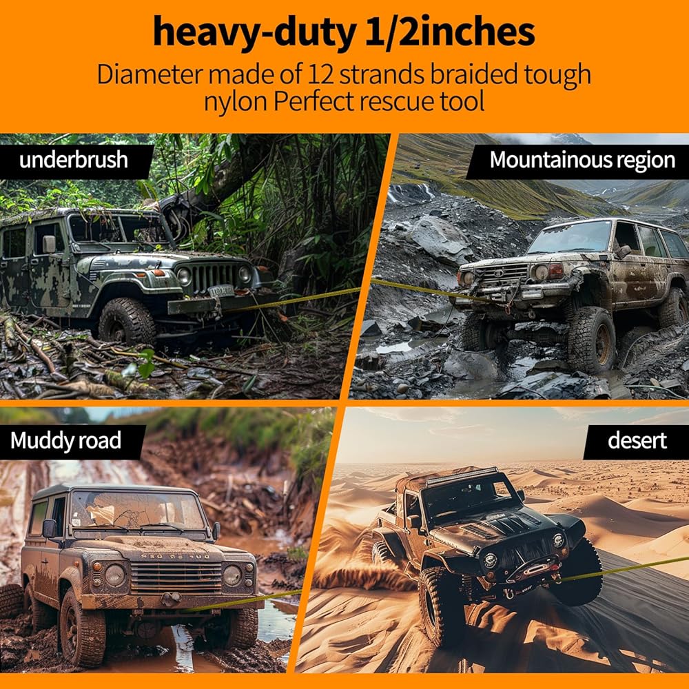 - هيكل عالي التحمل --- قطر 1/2 بوصة مصنوع من 12 ضفيرة من النايلون القوي المضفر، والذي يتميز بقدرة سحب مذهلة تبلغ 13500 رطل وقوة كسر تصل إلى 33076 رطل.