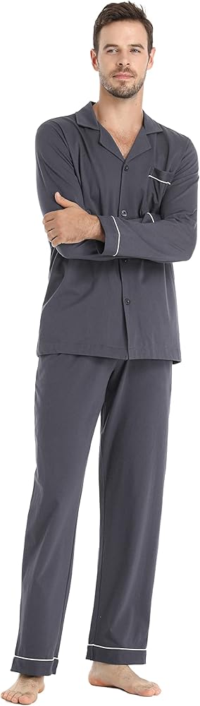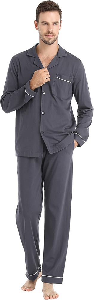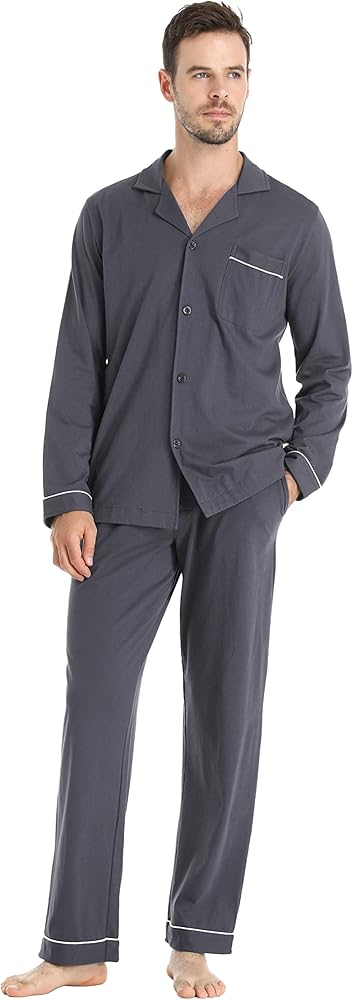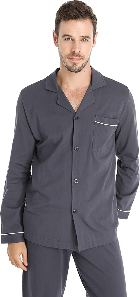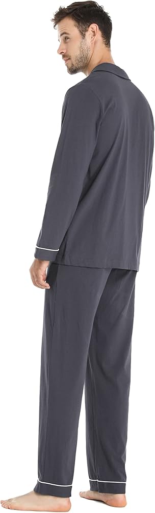 - 【مجموعة ملابس نوم ناعمة ومريحة】نسيج قطني عالي الجودة مع شعور مريح ومسامي ومريح على الفور. كولا طية صدر السترة الكلاسيكية تمنحك مظهرًا كلاسيكيًا.