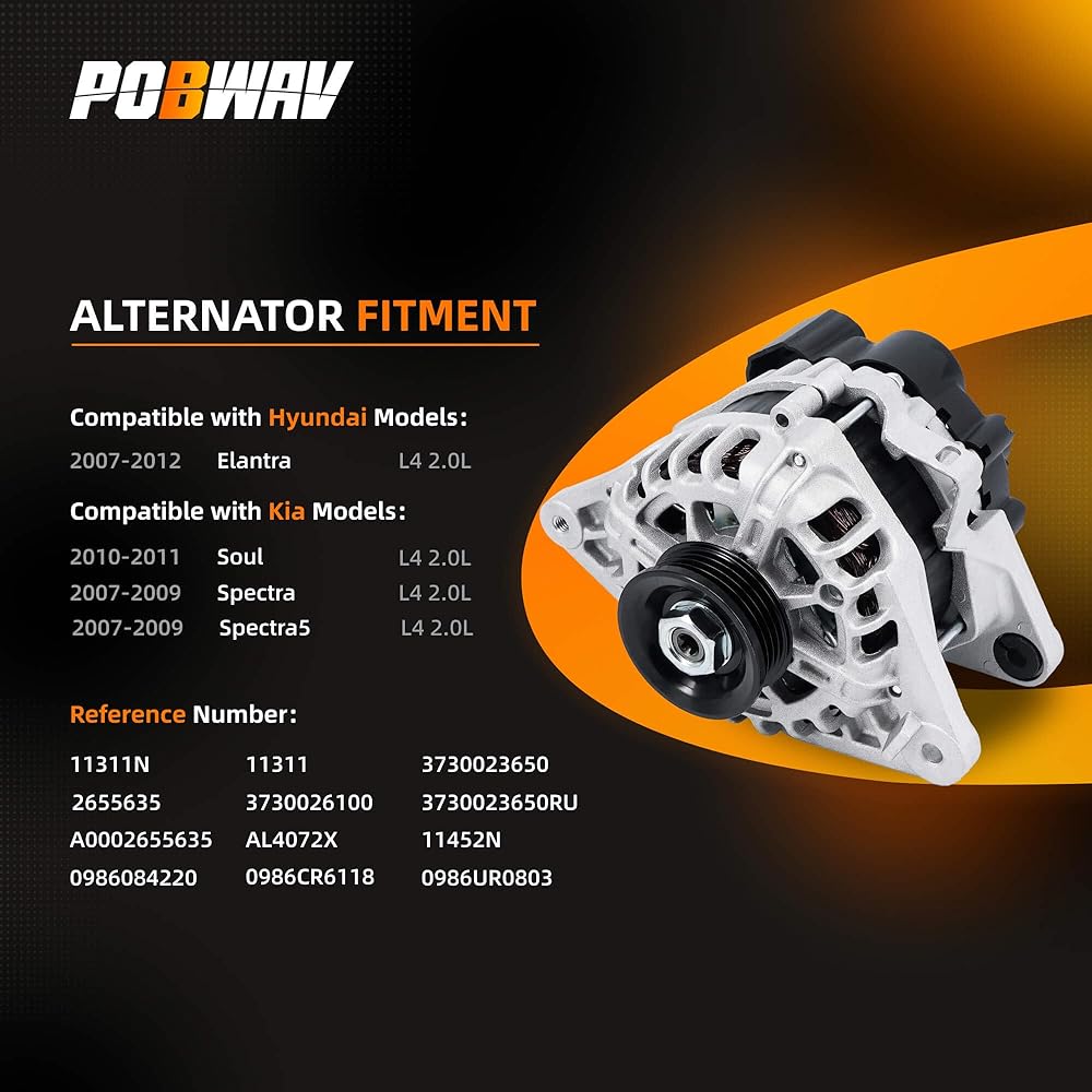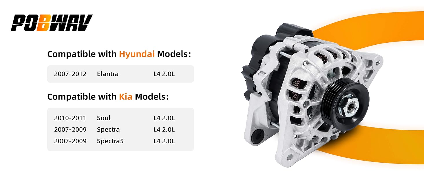 【التوافق: مولد 37300-23650 متوافق مع Hyundai Elantra 2007-2012 2.0L L4 & Kia Soul 2010-2011 2.0L L4 & Kia Spectra 2007-2009 2.0L L4 & Kia Spectra5 2007-2009 2.0L L4