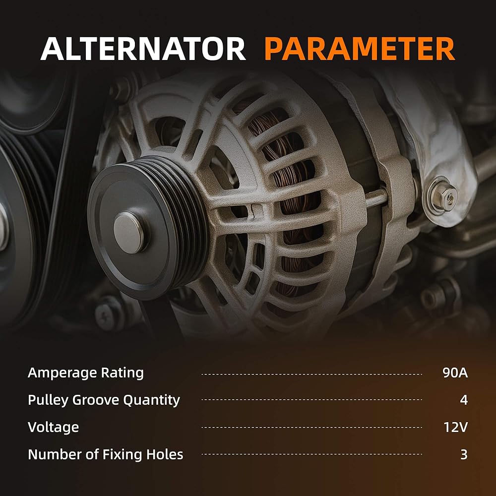 【المواصفات 】 :① الجهد: 12 فولت؛ ② التيار: 90 أمبير؛ ③ الدوران: CW (اتجاه عقارب الساعة)؛ ④ عدد الأخاديد: 4 بكرة أخدود؛ ⑤ الحالة: جديد