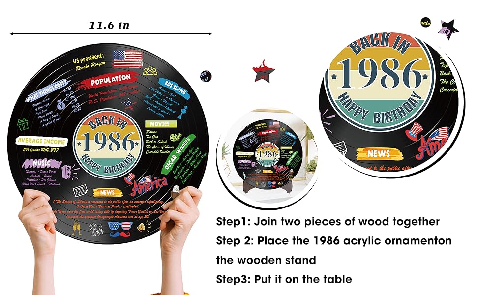【حجم مثالي】: حجم ملصق الفينيل لملصق عيد الميلاد الأربعين العتيق لعام 1986 هو 30 × 31 سم / 11.8 × 11.2 بوصة. يمكن تقديم سجل الفينيل هذا الذي يرجع تاريخه إلى عام 1986 كهدية لإضافة المزيد من المرح لعائلتك وأصدقائك وأحبائك، ولتزيين منزلك وتجمعاتك.