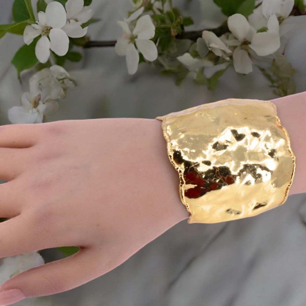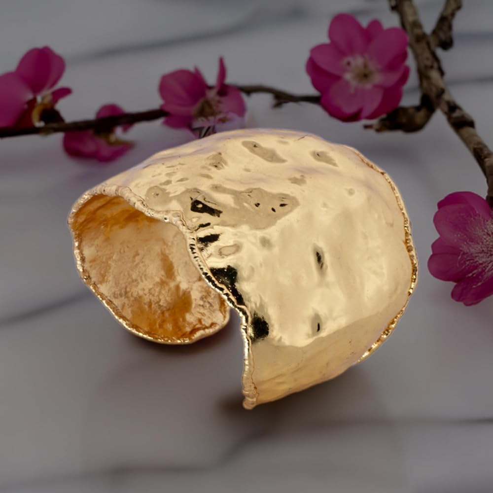 سوار مزود بطبقة من الذهب المنصهر، مجعد بحواف منصهرة، سوار عريض مجعد بحواف مدببة، سوار مجعد، طبقة خارجية من الذهب شديد اللمعان