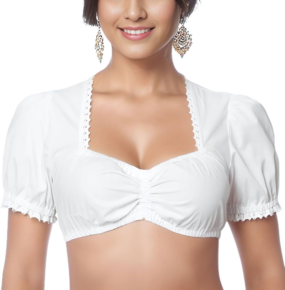 - women oktoberfest blouse featuring square puff style short sleeve,neck, also featuring cropped length, sweatheart neckline