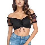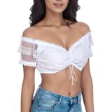 Jdlsppl Women's Dirndl Cotton Blouse Short Sleeve Traditional German Crop Top Soft Oktoberfest Shirt Ruched Cropped Top Summer Bavarian Shirt