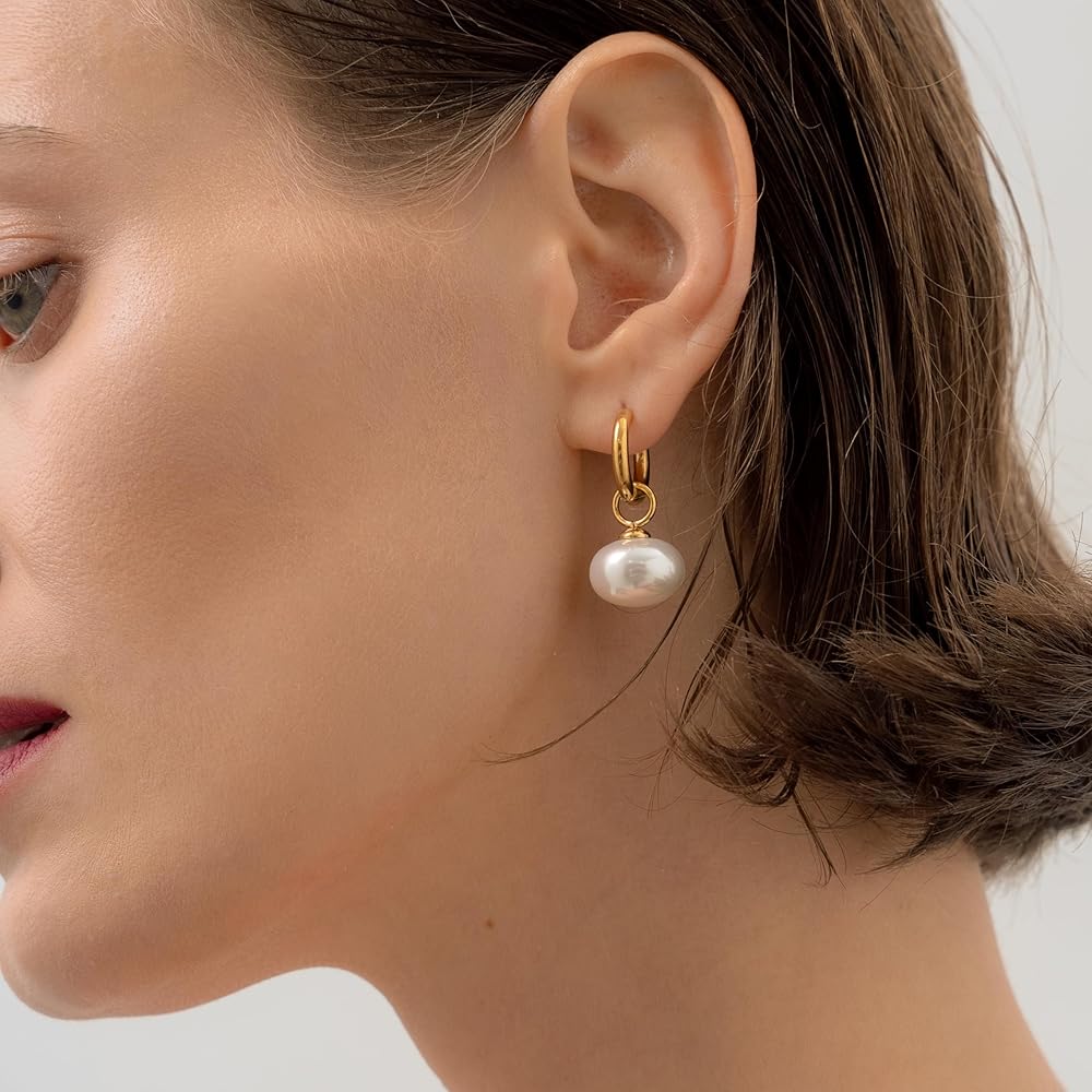 🌊 الجمال الأخلاقي - توفر اللؤلؤة المقلدة الناعمة نفس الأناقة المضيئة مثل اللؤلؤ الطبيعي - دون الإضرار بالحياة البحرية. بريق مستدام يمكنك أن تشعر بالرضا عنه. (أقراط الزفاف الذهبية | أقراط الزفاف للنساء | أقراط اللؤلؤ الذهبية)