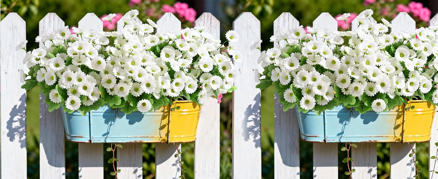 【مقاومة للأشعة فوق البنفسجية ولا تحتاج إلى صيانة】 يمكن لأزهارنا الخارجية أن تقاوم بشكل فعال تآكل مياه الأمطار والشيخوخة الناتجة عن الأشعة فوق البنفسجية. لضمان جمال يدوم طويلاً في جميع الظروف الجوية. ستظل هذه الزهور الاصطناعية الخارجية دائمًا ملونة ونابضة بالحياة وفي إزهار كامل، مما يجلب جمال الطبيعة إلى منزلك طوال العام دون أي صيانة.