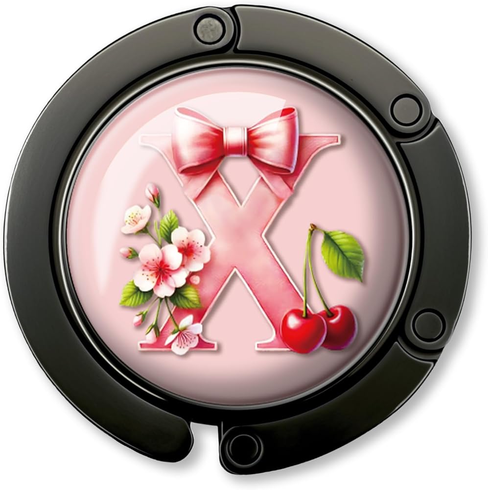 هدايا بخطاف محفظة أولية مضحكة - حرف القوس الوردي X - حامل محفظة قابل للطي للطاولة - شماعة حقيبة يد مستديرة للنساء - هدايا عيد الميلاد للأم والزوجة والأخت والصديق والسيدة الرئيسة