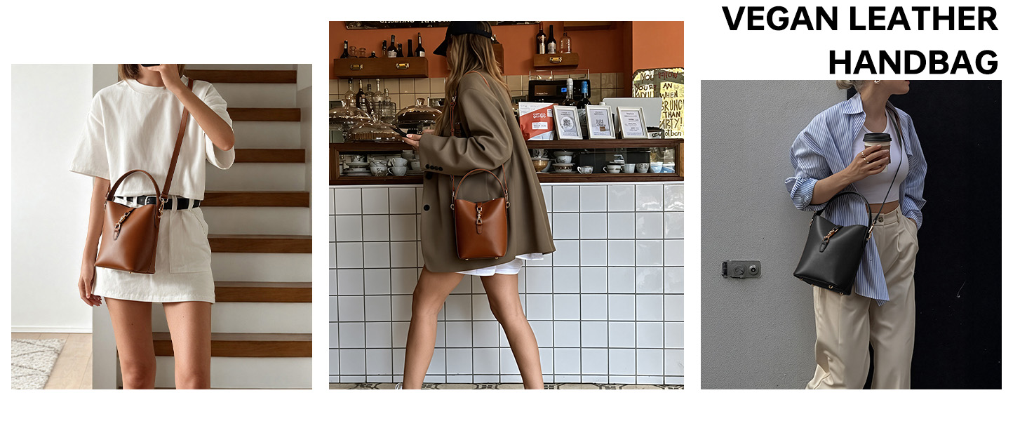 • قفل ملتوي أنيق: يُستخدم تصميم القفل المعدني للفتح، ويضيف لمسة إضافية من الأناقة إلى حقيبة اليد الخاصة بنا. لا تعمل هذه الميزة الفريدة على تحسين المظهر العام فحسب، بل تضمن أيضًا تخزين أساسياتك بشكل آمن في الداخل