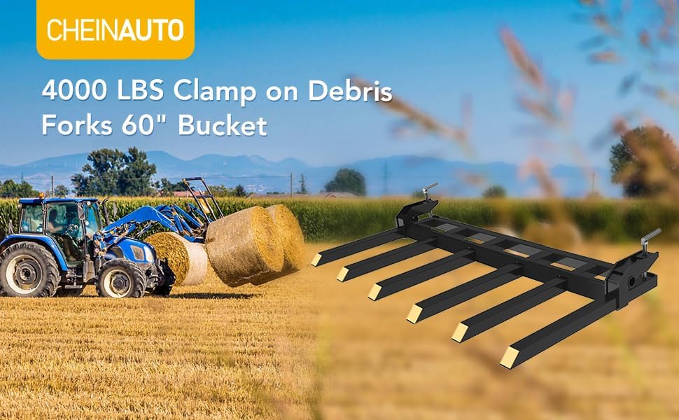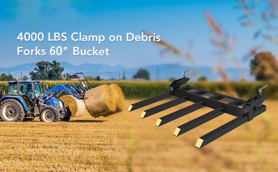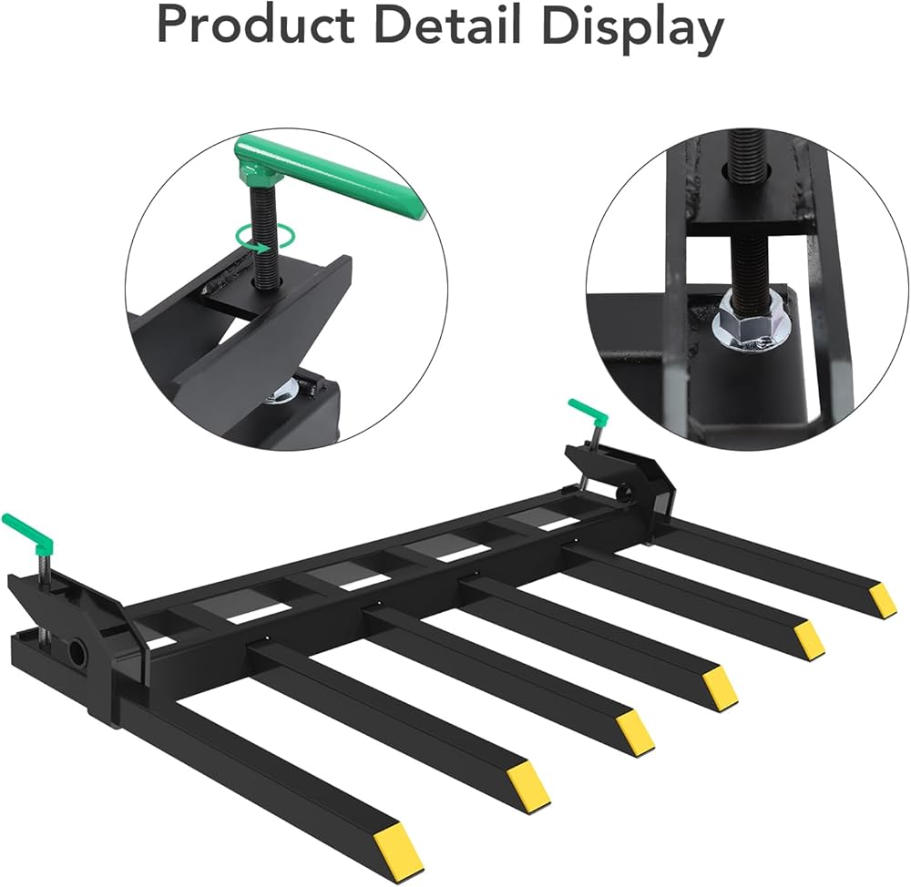 تصميم عالمي للتثبيت: تم تصميم شوكات الجرار هذه لتناسب معظم جرافات اللودر التي يصل عرضها إلى 60 بوصة. يسمح نظام المشبك القابل للتعديل بالتثبيت السريع والقبضة الآمنة دون الحفر أو اللحام. ما عليك سوى تحريك الشوكات على الدلو الخاص بك، وربط البراغي، والبدء في العمل - مما يوفر الوقت مع تعزيز تنوع وكفاءة رفع الجرار الخاص بك.