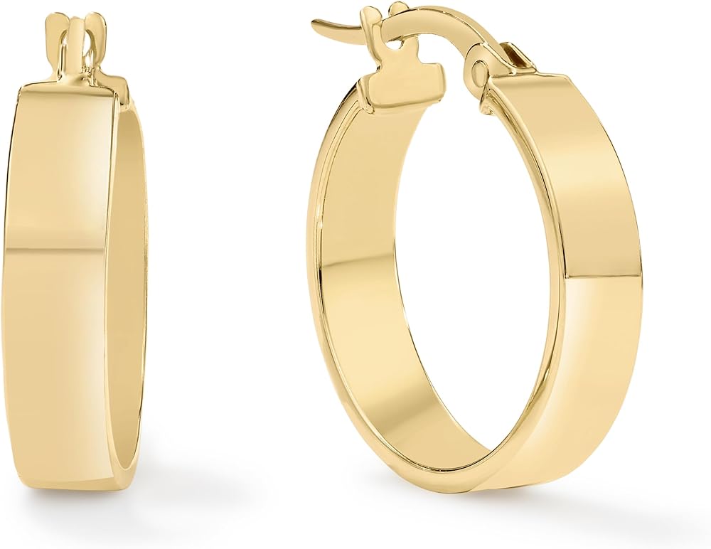 مصنوعة من الذهب الحقيقي عيار 14 قيراط، وتتميز هذه الأقراط الدائرية بعرض 2.54 سم بسطح خارجي أنيق عالي الصقل مع لمسة نهائية داخلية متباينة مقطوعة بالألماس. يوفر الذهب الأصلي لمعانًا دائمًا ومقاومة طبيعية للتشويه مع العناية الصحيحة.