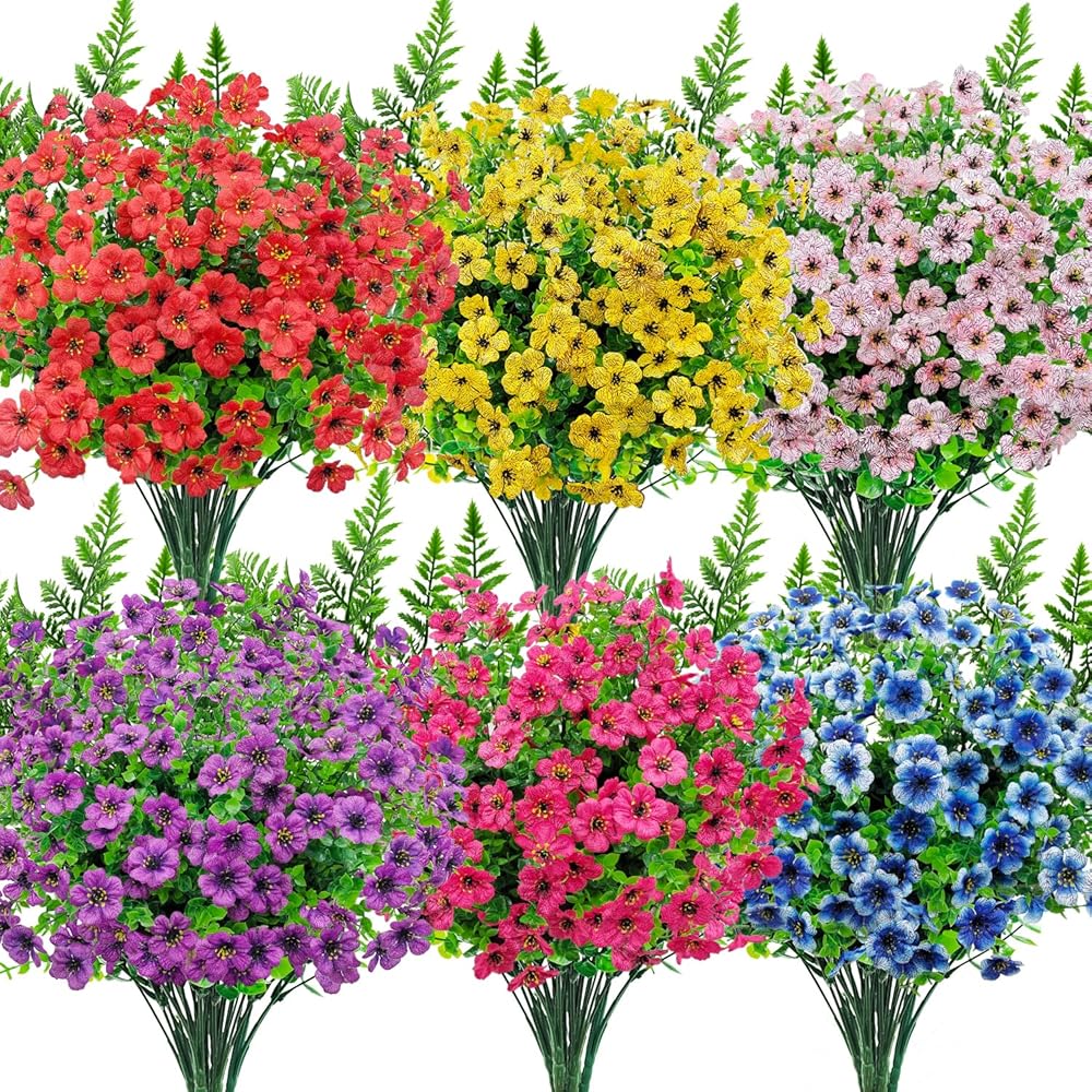 كمية كبيرة: تحتوي العبوة على 12 مجموعة من الزهور الصناعية الخارجية و4 مجموعات من السرخس، وهي كافية لاحتياجات الديكور اليومية. السيقان قابلة للتعديل والزهور قابلة للفصل، مما يسمح لك بالتشكيل بحرية وفقًا للحاويات والأنماط الزخرفية المختلفة