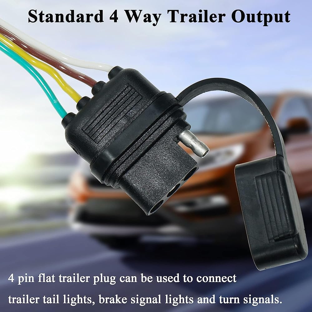 3️⃣ Reliable 4-Pin Output: Powers trailer tail lights, brake lights, and turn signals. Standard 4-way flat connector works with most light-duty trailers for versatile towing.