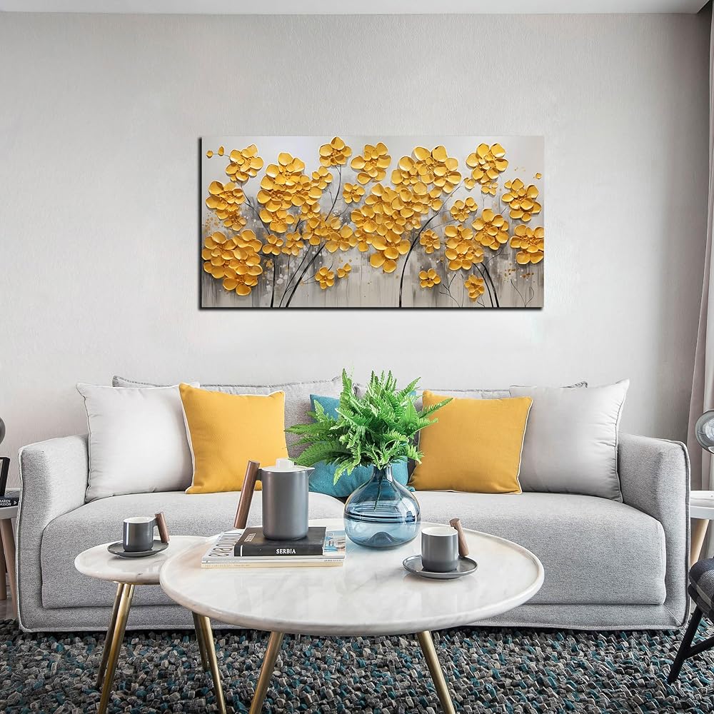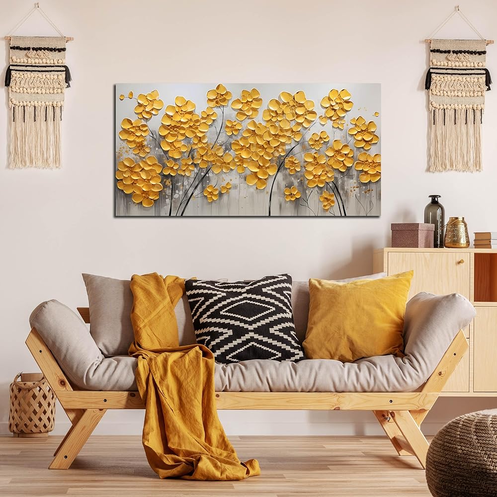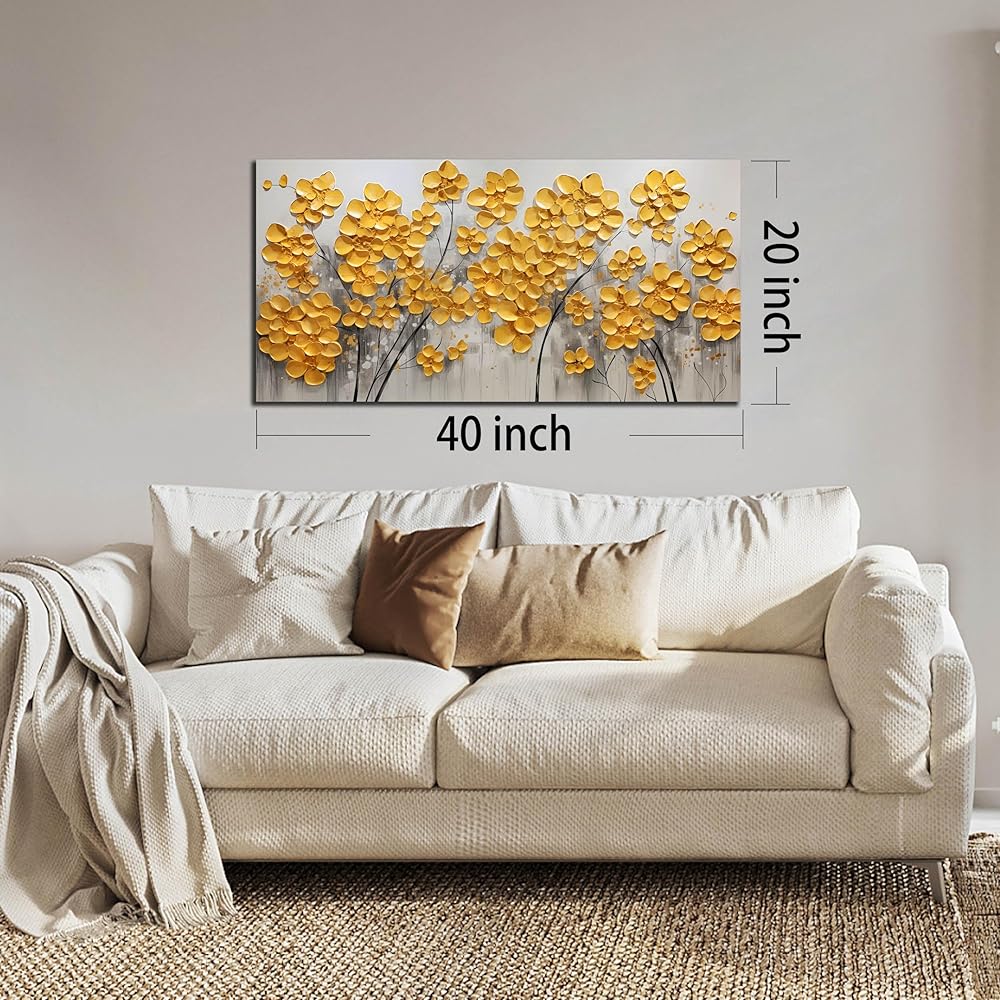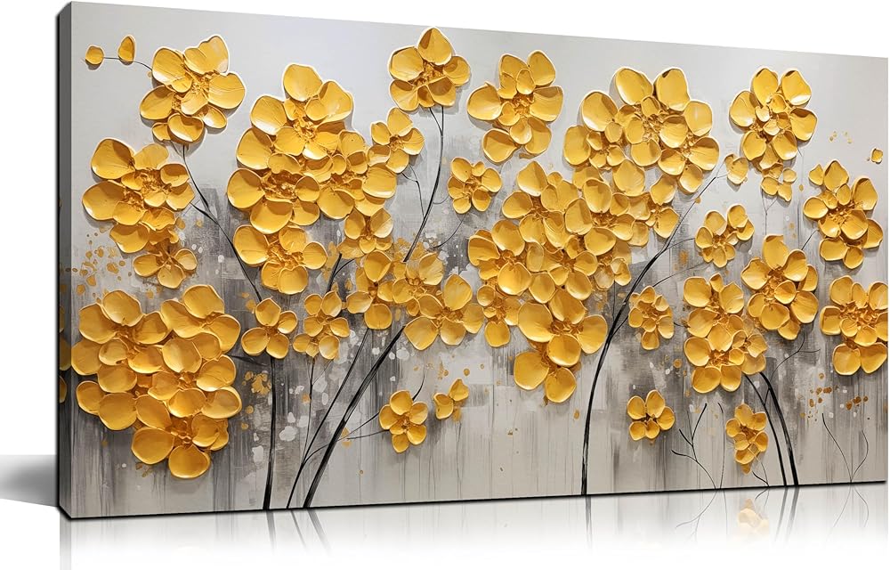SKYRISE مجردة الذهب الأصفر الزهور / زهرة جدار ديكور فني لغرفة المعيشة، الحديثة قماش الفن الزخرفية صورة طباعة العمل الفني لمكتب غرفة النوم، حجم 40x20 بوصة