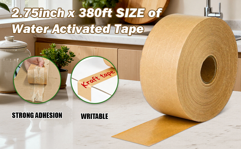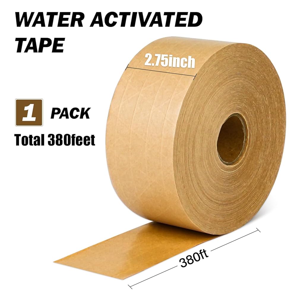 شريط مقوى بورق كرافت منشط بالماء، عبوة واحدة، 2.75 بوصة × 380 قدم، للتغليف والشحن الآمن عالي التحمل، صديق للبيئة وقابل للتحلل البيولوجي
