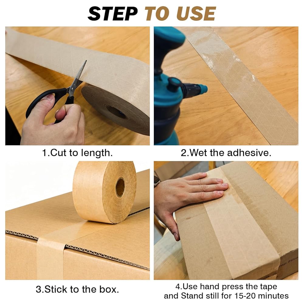 • منشط بالماء: الشريط المنشط بالماء مثالي للشحن الثقيل وكبير الحجم، مما يشكل ختمًا قويًا للغاية يتطلب شريطًا واحدًا فقط، مع توفير مظهر احترافي وعالي الجودة.