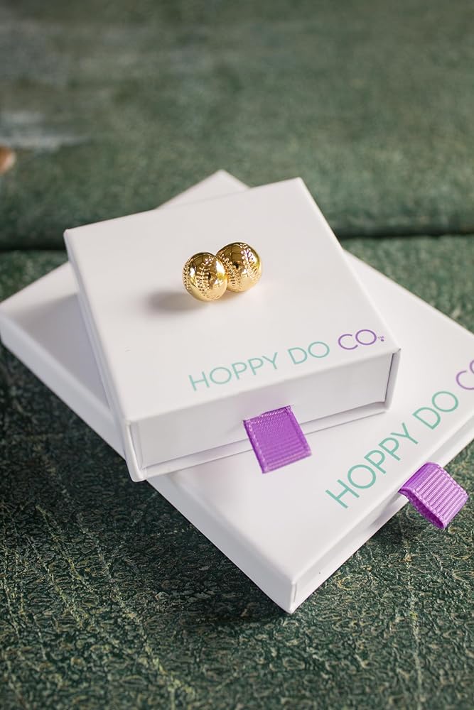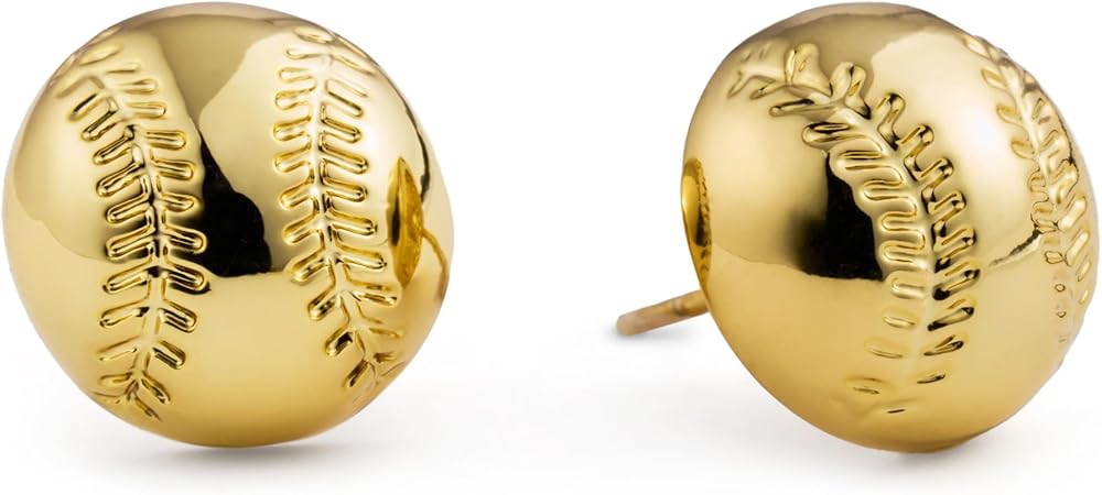 Show off your love of the game with baseball earrings from HOPPY DO CO. These lightweight, stylish 10mm half sphere earrings make a great gift for the baseball mom or fan in your life - or a great treat for yourself! Made from zinc alloy and finished with 18k gold plating and attention to detail, these game day earrings will make you the talk of the diamond. Designed with a hollow back and secure bullet back, you'll feel comfortable wearing this baseball jewelry all day long. Each pair comes in an adorable, giftable box so you can store or gift them in style.