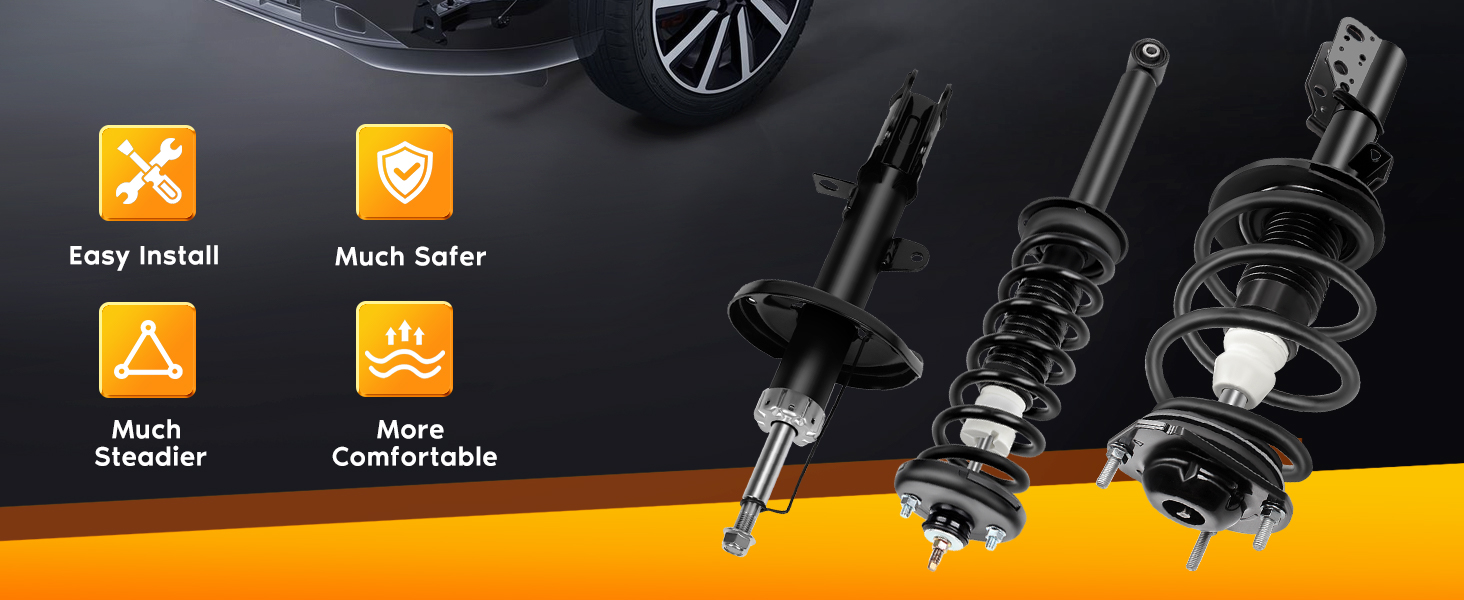 استبدال لـ: إذا كانت سيارتك تصدر صريرًا أو تصدر أصواتًا غير عادية أثناء القيادة، فأنت بحاجة إلى استبدالها بممتص الصدمات الكامل الخاص بنا مع مجموعة زنبركية، بعد استبدال الصدمات القديمة المهترئة بهذه الزنبركات/الصدمات الجديدة ذات التحميل الزائد، لاحظت رحلة أفضل بكثير.