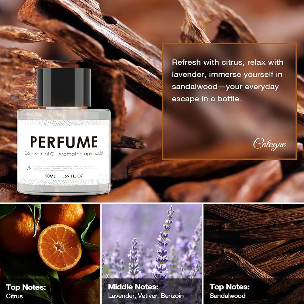 إعادة تعبئة معطر هواء السيارة الذكية - كولونيا - إعادة تعبئة العطور المخصصة، إعادة تعبئة موزع روائح السيارة سعة 50 مل، استبدال رائحة طويلة الأمد لموزع الروائح المحمول، تتوفر روائح متنوعة