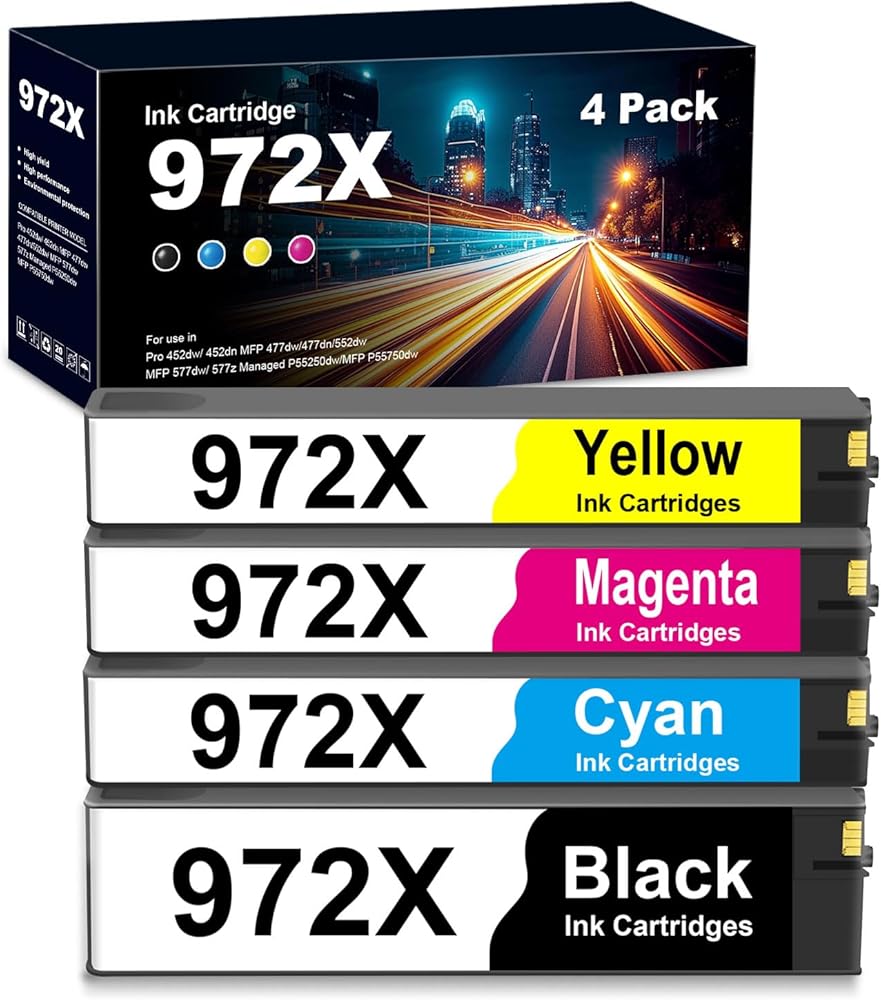 972X Ink Cartridges Replacement for HP 972X 972A 972 for PageWide Pro MFP 477dw 452dw 577dw 552dw 452dn 477d Printers (4-Pack, Black Cyan Yellow Magenta)