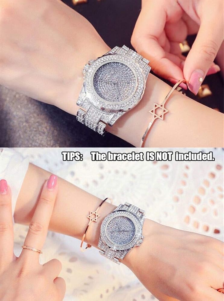 ساعة ماسية للنساء: حزام مريح وأنيق: مواد عالية الجودة وناعمة ومتينة لتوفير تجربة ارتداء مريحة. ومريحة لك لضبط الحزام على الطول المناسب الذي ترتديه.