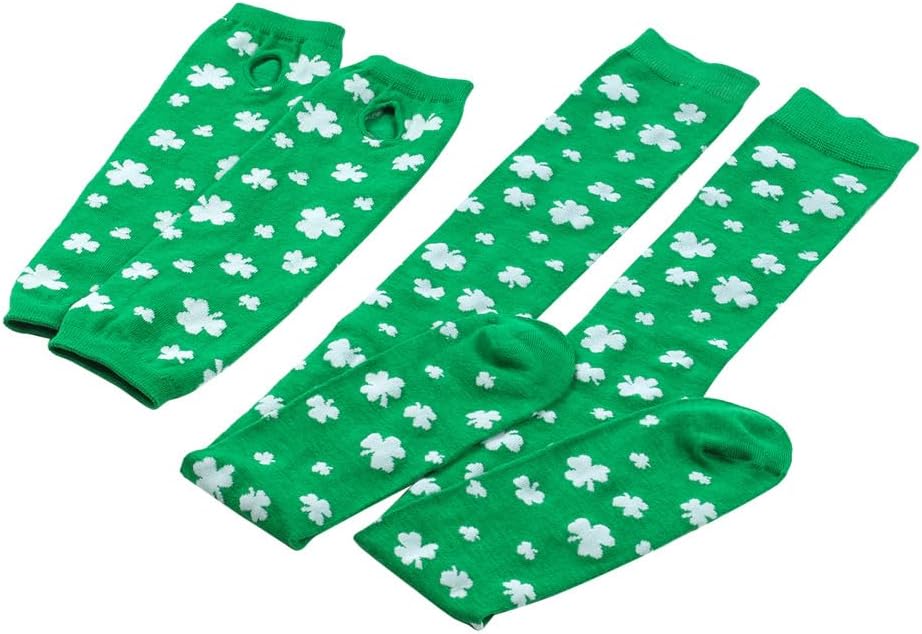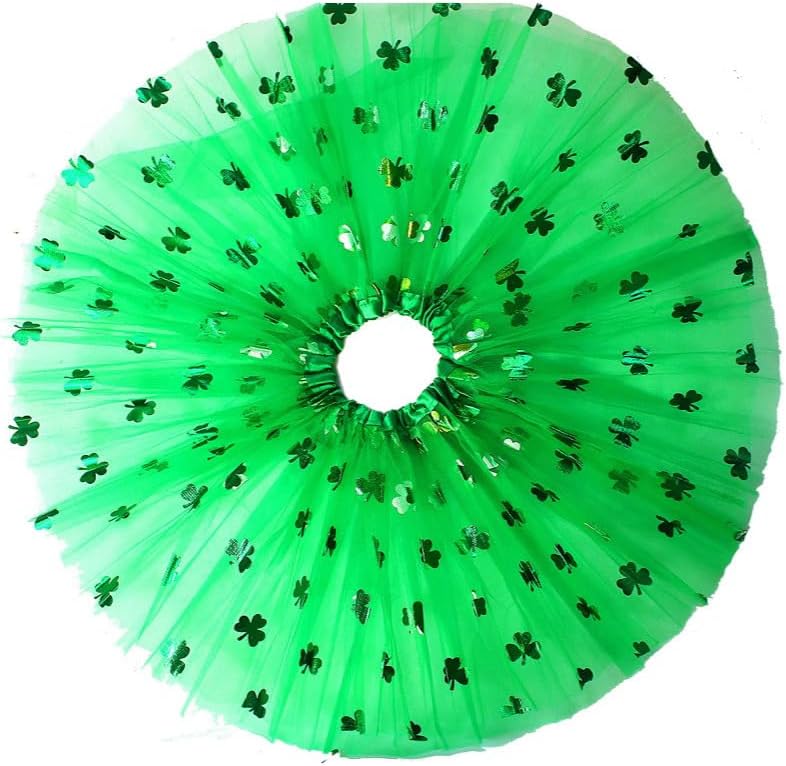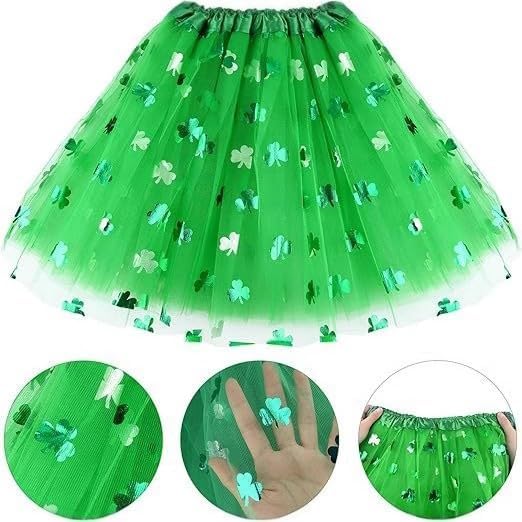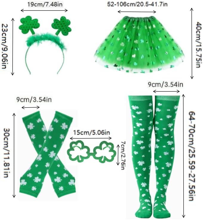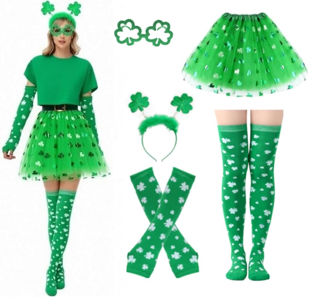St. Patrick's Day Costume Accessories Set with Green Tutu Skirts for Women, Headband, Arm Warmers and Stocking, Shamrock Glasses