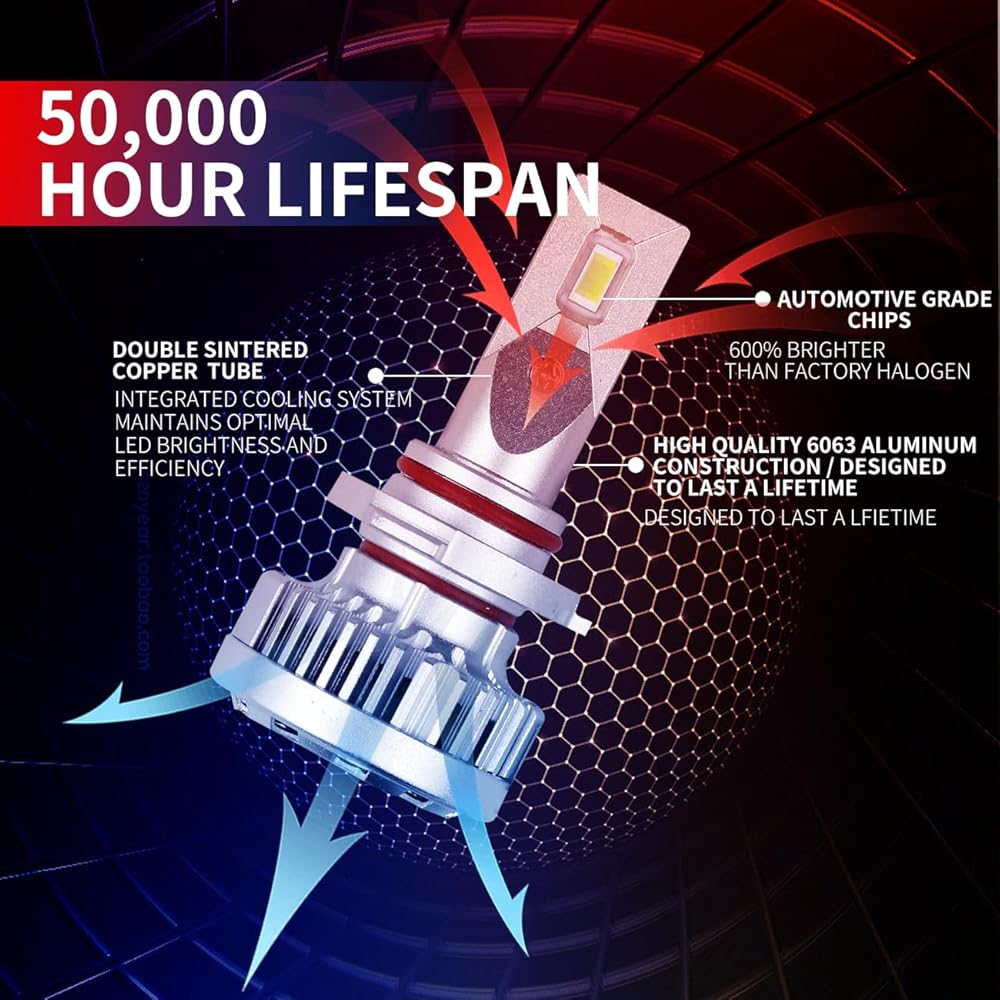• 【أكثر سطوعًا بنسبة 600% من الهالوجين】- رقائق عالية الجودة للسيارات مع 22000 لومن حقيقي لكل زوج، درجة حرارة لون 6000 كلفن. يوفر تصميم نمط الشعاع الذي يركز على المصنع نطاق إضاءة أوسع وأبعد يصل إلى 6 مرات أكثر سطوعًا من لمبة الهالوجين الأصلية. مصنوعة لتجميع المصنع الخاص بك.