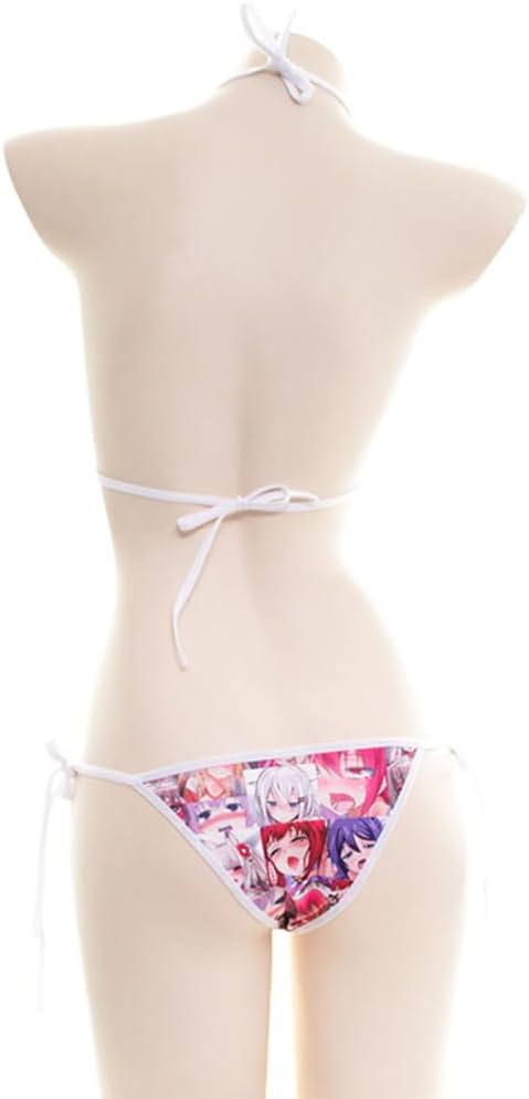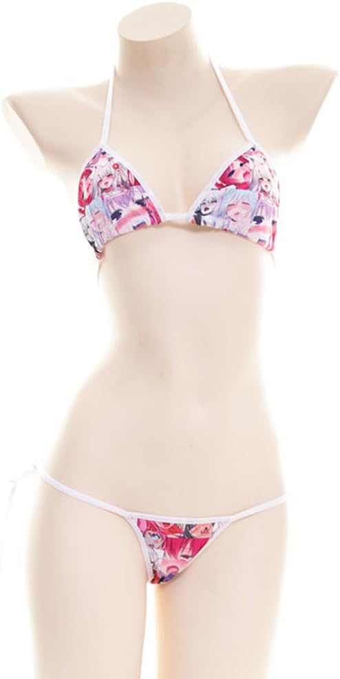 بيكيني مثير بسلسلة وجه للنساء ملابس داخلية صغيرة ملابس سباحة صغيرة زي تنكري ملابس سباحة شقية لوليتا يابانية مانغا أنيمي لعب الأدوار لوليتا كارتون Kawaii لطيف حمالة صدر ثونغ مجموعة