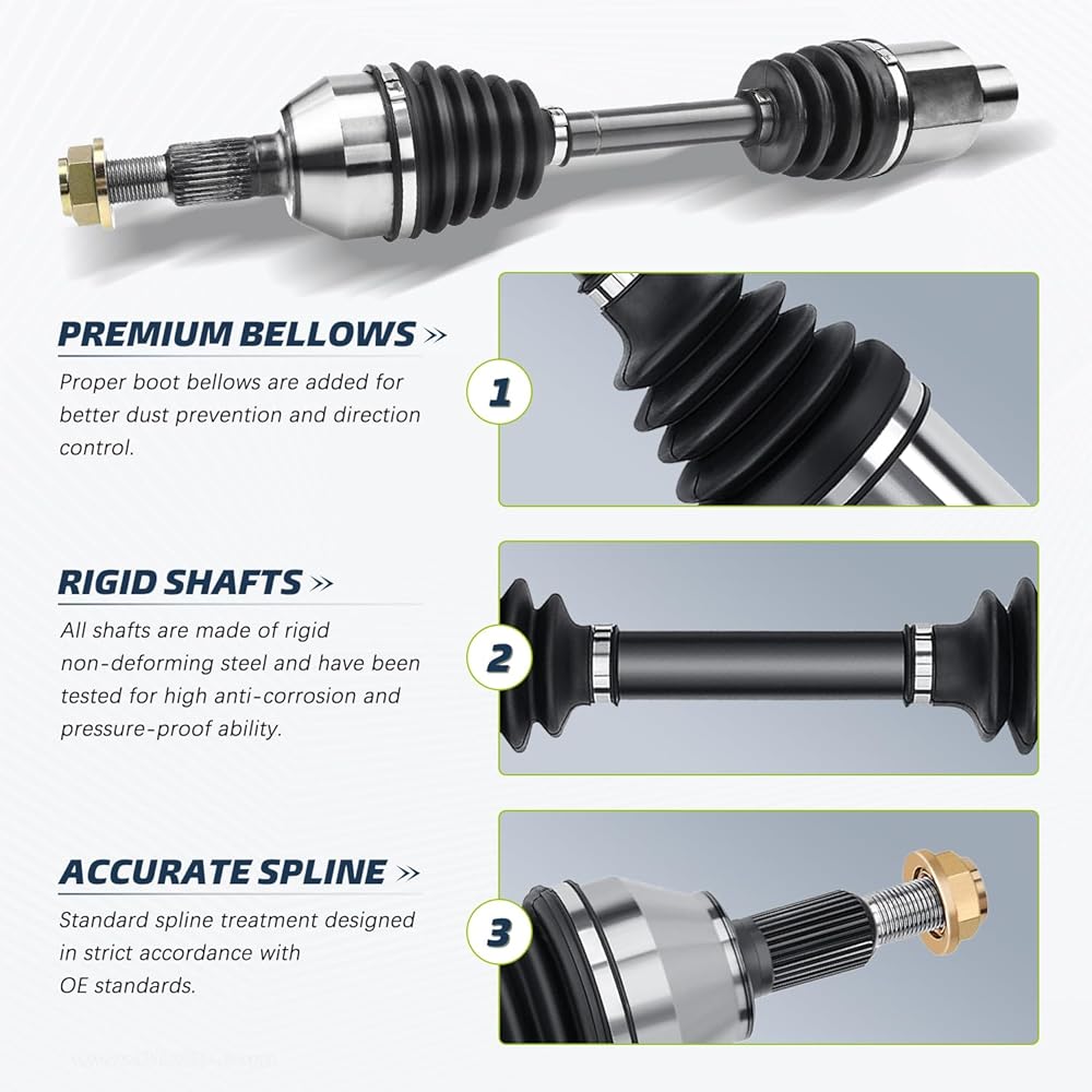 - الميزات: (محور السيرة الذاتية) الطول الإجمالي: 24 1/2 بوصة. الخط الداخلي: 29. الخط الخارجي: 33. الشكل الداخلي: أنثى. ABS على المحور: لا شيء. (محمل العجلة) العروات: 5. نوع الشفة: 3 مسامير مثلثة. نوع ABS: مستشعر. الموضع: أمامي يسار ويمين