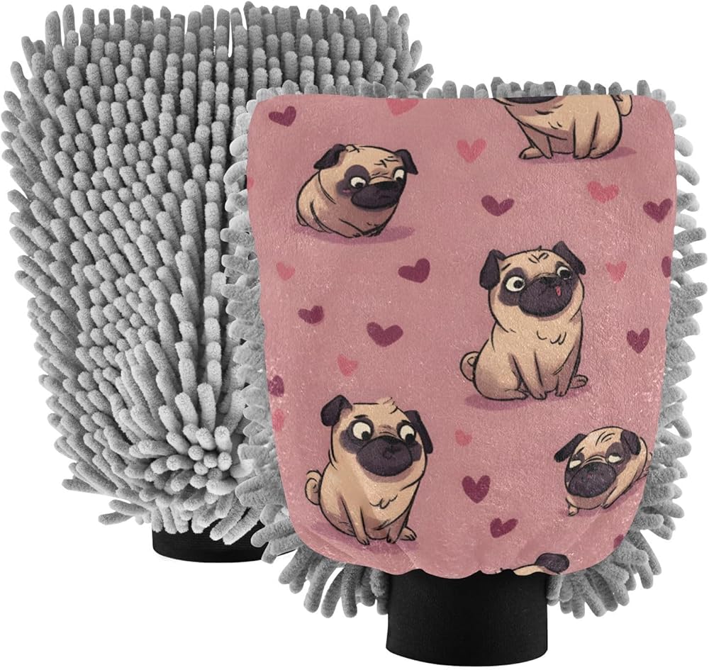AIXIWAWA غسيل السيارات قفاز غسل القفازات الصلصال قلوب طباعة خالية من الخدش ماصة للماء 2 حزمة كبيرة in Kuwait