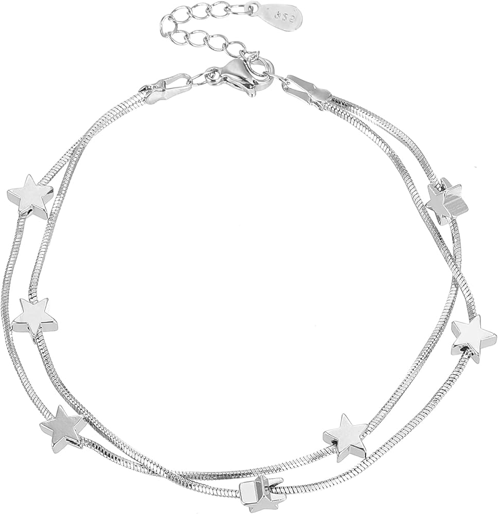 نجوم سحر سوار للنساء، نجوم فضية سلسلة مزدوجة سوار مطرز نجمة الحد الأدنى أساور السماوية الكاحل أساور لذيذ سلسلة هدايا مجوهرات بسيطة للنساء المراهقات