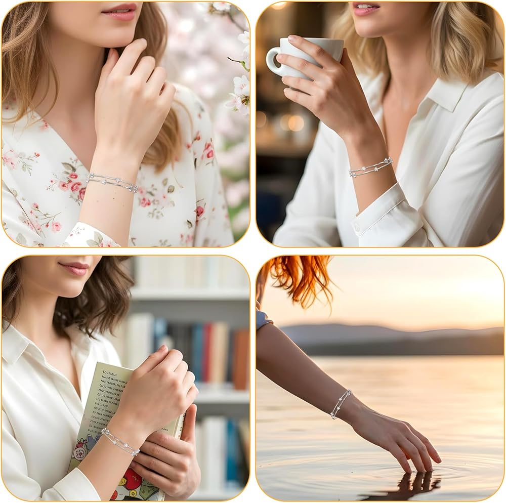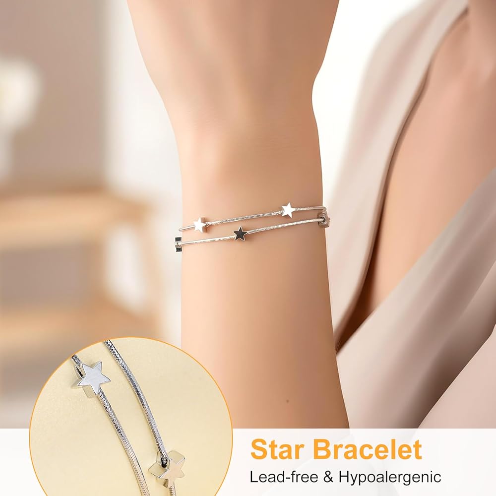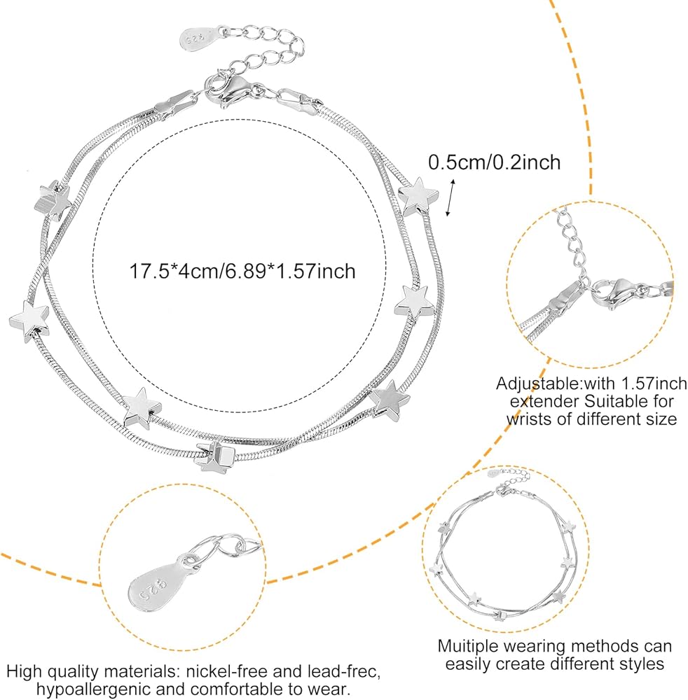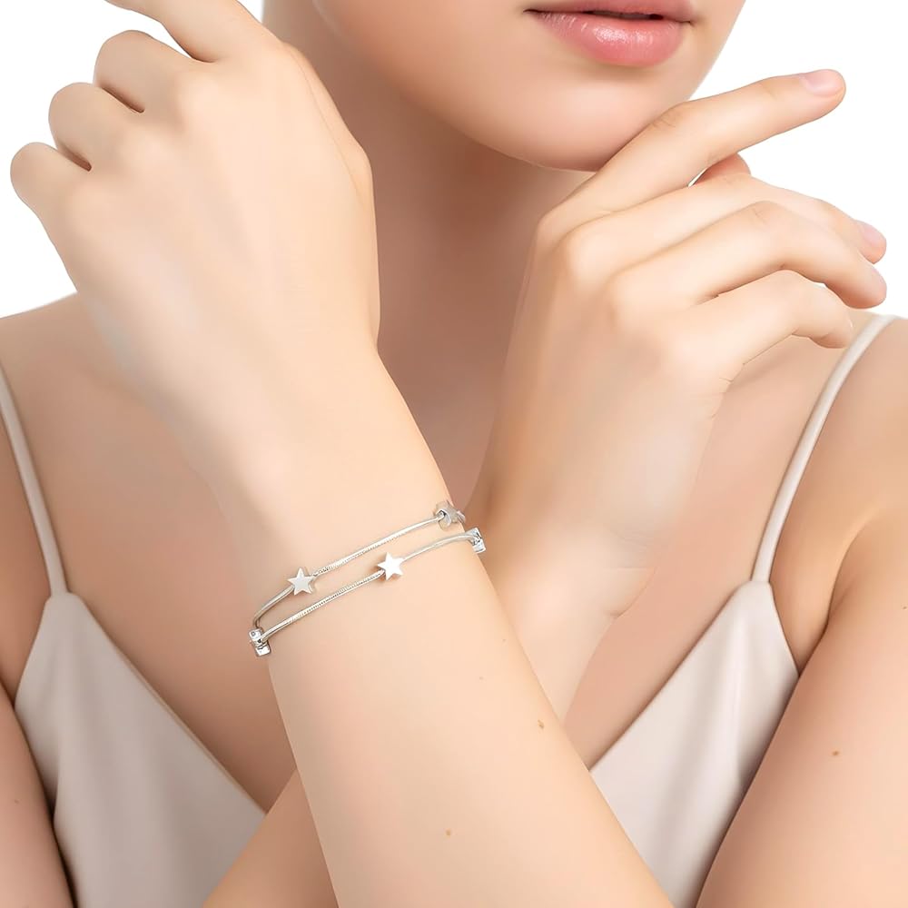 • STARS BRACELET FOR WOMEN: This exquisite silver jewelry stars double chain bracelet features a delicate double-layer design with twinkling star charms, creating a perfect blend of minimalism and elegance for everyday wear.