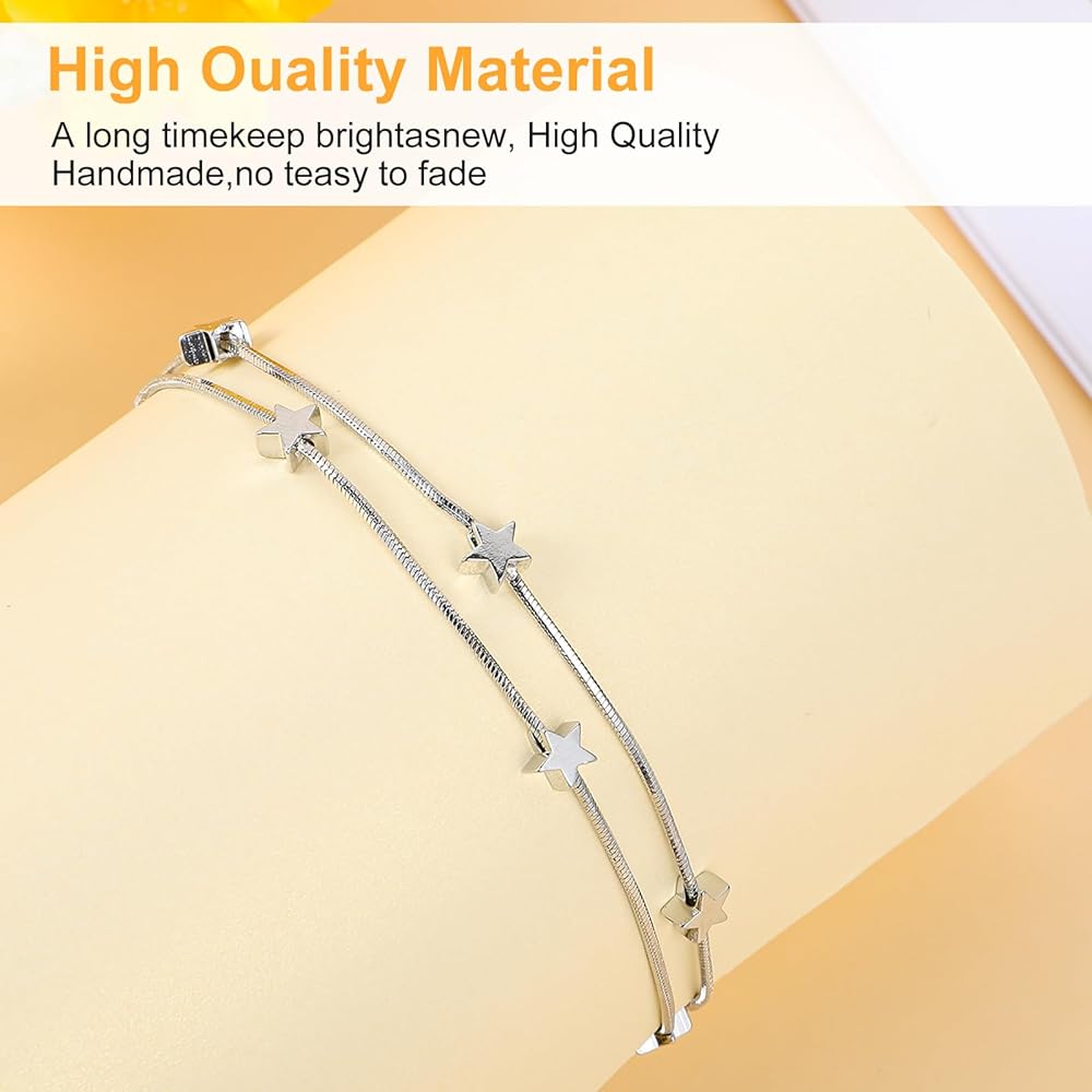 • BEADED STAR MINIMAL ANKLE BRACELETS: Crafted with precision, our dainty chain simple jewelry gifts showcase a sophisticated y2k jewelry silver women bracelet design that transitions seamlessly from wrist to ankle wear with adjustable sizing.