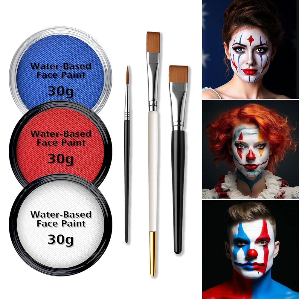 Vibrant Patriotic Colors: Red, white and blue water-based paints offer bold coverage for flags, joker looks, or custom designs—no stains or fading.