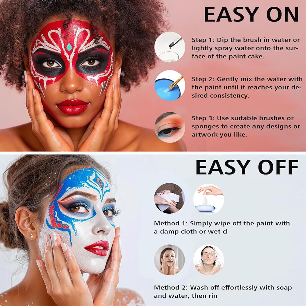 Long-Lasting Value: High-pigment cakes cover many faces; reusable and portable for parties, travel, or last-minute touch-ups.