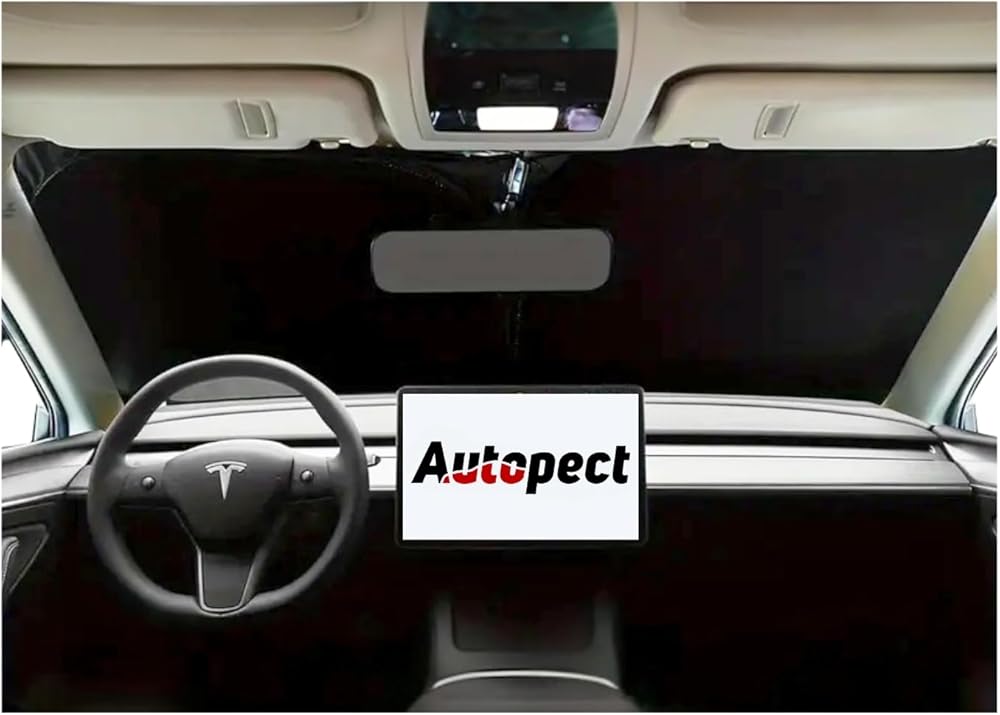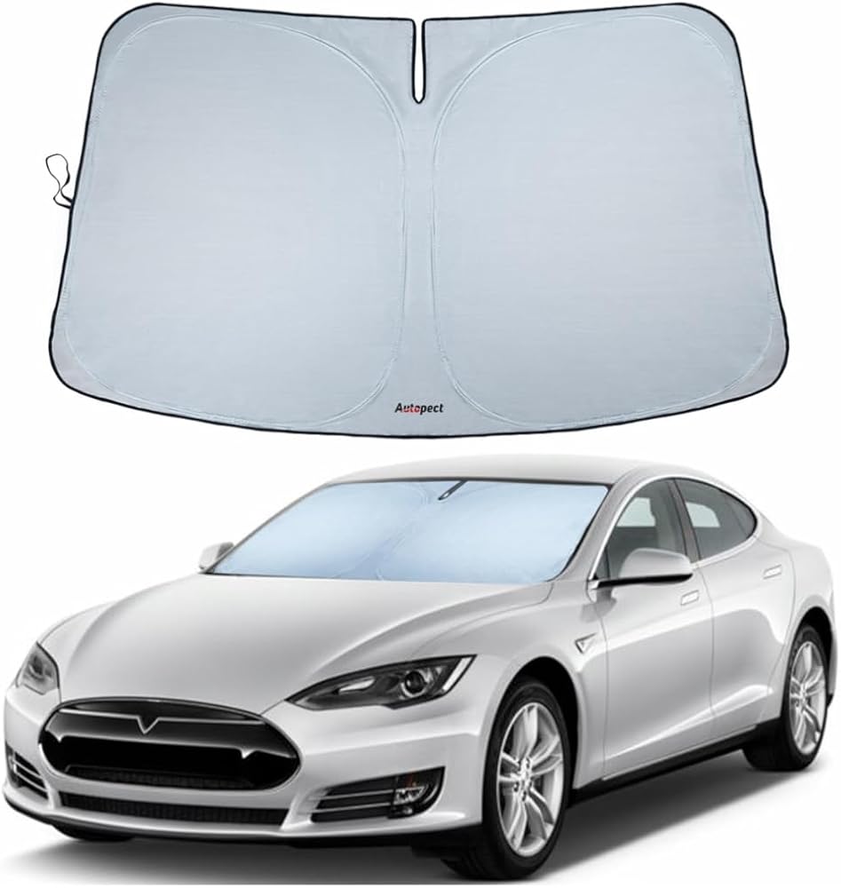 مظلة شمسية للزجاج الأمامي لسيارة Tesla Model S - مظلة شمسية للنافذة الأمامية ملائمة حسب الطلب، تحجب 99% من الأشعة فوق البنفسجية والحرارة، عاكسة للضوء، تصميم مقطوع بالمرآة، قابلة للطي ومقاومة للبهتان، تحافظ على برودة الجزء الداخلي