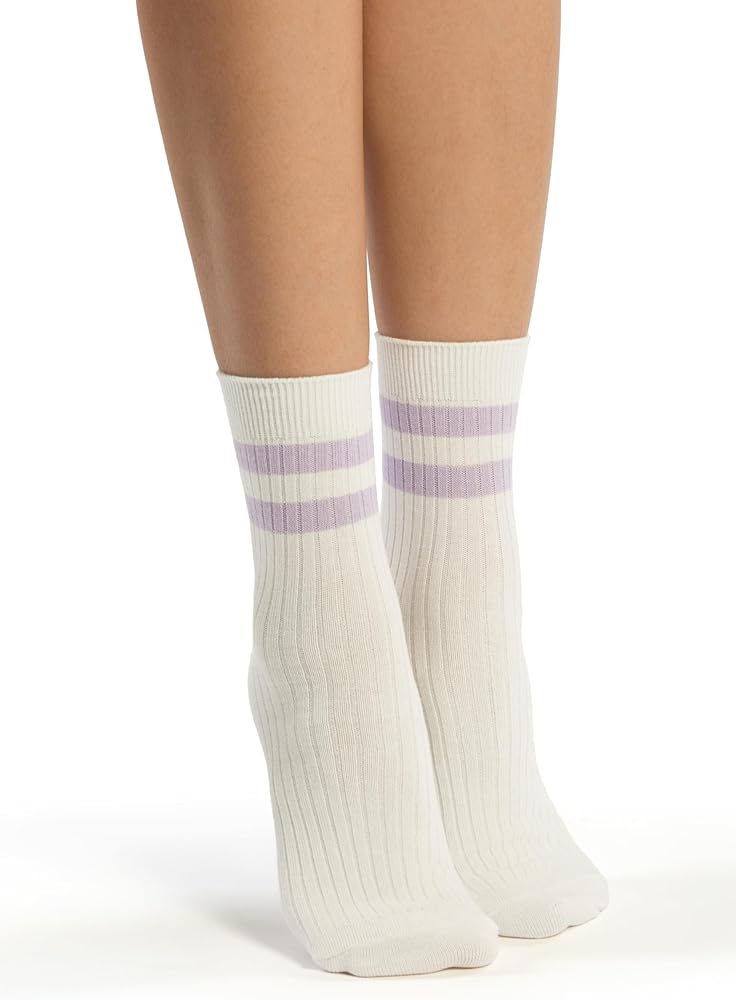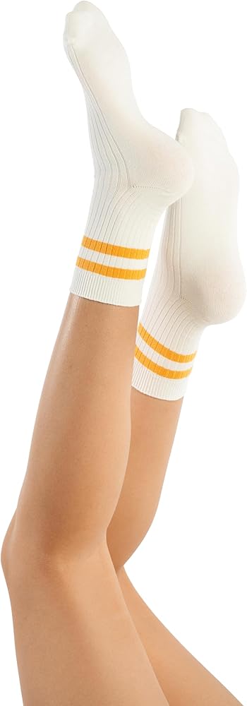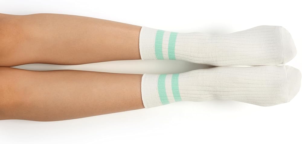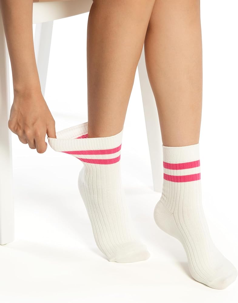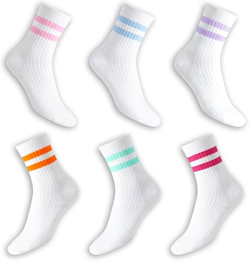 جوارب قطنية للكاحل، 6 أزواج، نمط مخطط باستيل، مقاس نسائي 5-11، 80% قطن (الولايات المتحدة، رقمي، 5، 11، أبيض مع خطوط)