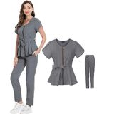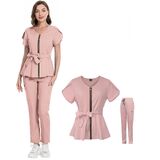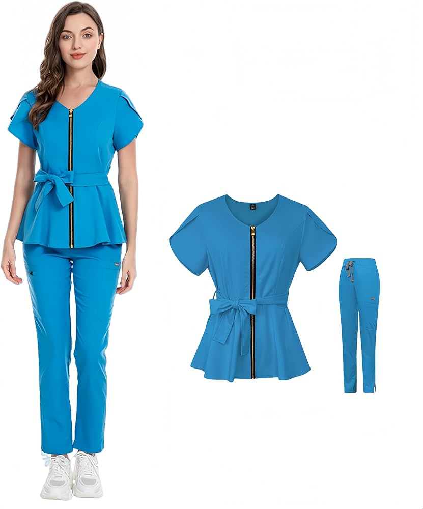 【تصميم فريد】: يتميز الجزء العلوي بحزام خصر عريض وتصميم حاشية مكشكشة، وهو أكثر تنحيفًا. يعزز التصميم الكلاسيكي ذو الرقبة على شكل حرف V والسحاب الشعور بالأناقة، مما يسمح لك بإظهار شخصيتك حتى في العمل. يوفر تصميم حزام الخصر المرن المرونة ويقلل من ضغط الخصر، مما يجعله خيارًا مثاليًا لمقدمي الرعاية الذين غالبًا ما ينحني أو يمشون أو يؤدون مهام ديناميكية.