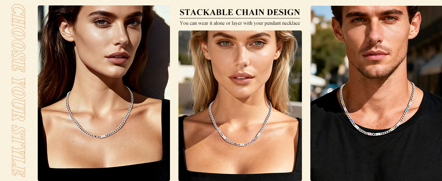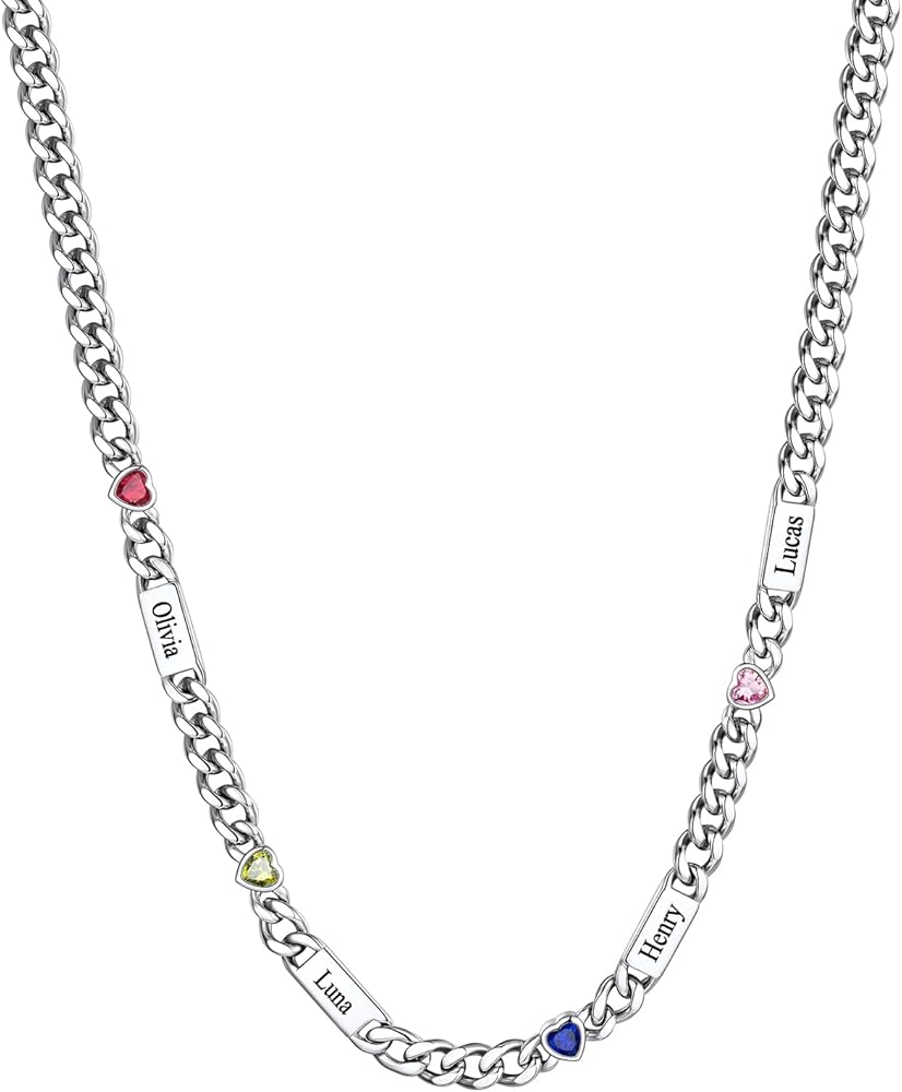 قلادة جوهرة كوبية مخصصة: 5A+ أحجار كريمة زركونيا مكعبة متلألئة ومحفورة بأسماء 1-6 على سلسلة من الفولاذ المقاوم للصدأ، مجوهرات يومية مثالية للنساء والرجال، مناسبة للارتداء اليومي غير الرسمي. هدية شخصية مدروسة للعائلة والأحباء
