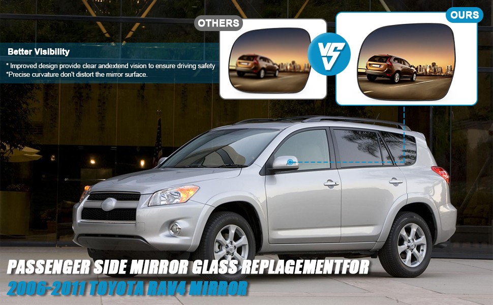 【تركيب السيارة】- تصميم وملاءمة بديلة مباشرة، تم تصميم هذا الزجاج البديل للمرآة الجانبية للسائق باحترافية كبديل مباشر لسيارة Toyota Rav4 2006-2011، استبدل رقم OE 8796142790 (يرجى التحقق مما إذا كانت معلومات سيارتك تتطابق مع طراز المنتج قبل الشراء.)
