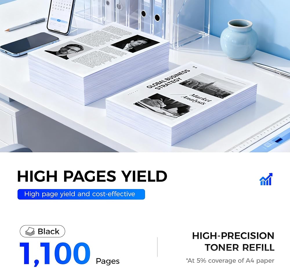 High Page Yield: Up to 1100 pages per 134A W1340A toner cartridge (Letter/A4, at 5% Coverage).